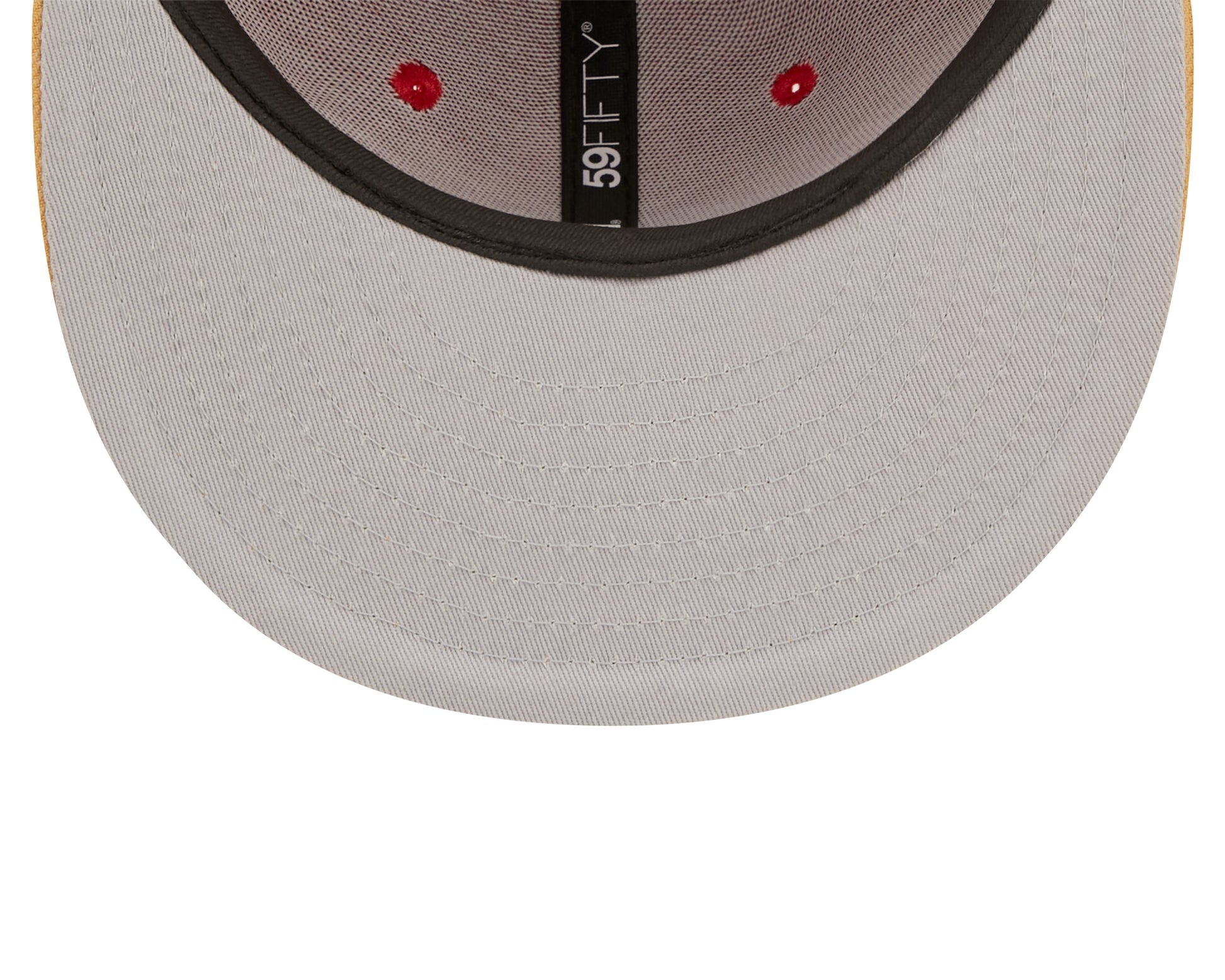 The 59FIFTY® cap is New Era's signature fitted cap. It is a structured cap with a flat visor, that has the ability to curve. The 59FIFTY® cap has a full crown and six panels. The cap has eight rows of visor stitching and a button on top.