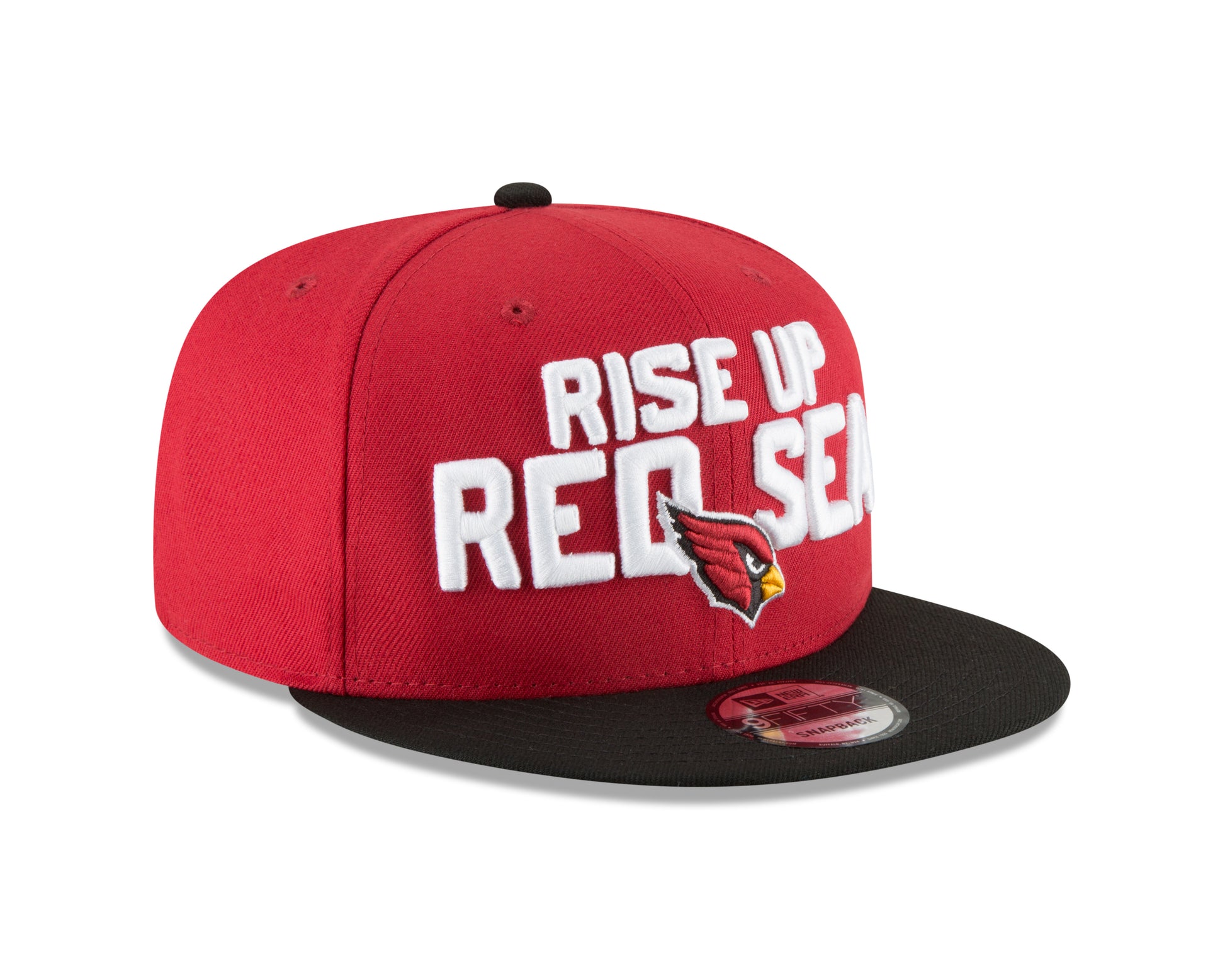 "Rise Up Red Sea"!!! Your going to support your team in this Spotlight Draft 9Fifty Snap Back Hat. This hat features Team/City Slogan with team logo on the Front. Second team slogan inside. NFL Sheild on the back. You will be supporting your team through out the season.