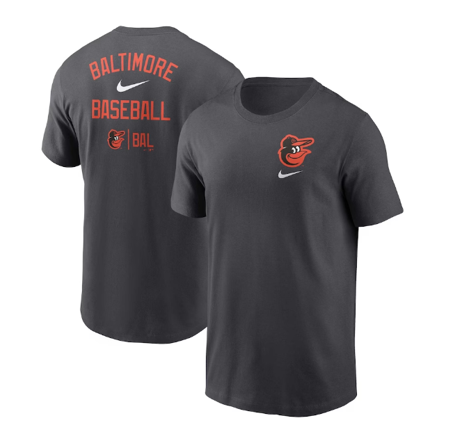 Baltimore Orioles Nike Charcoal Logo Sketch Bar T-Shirt
