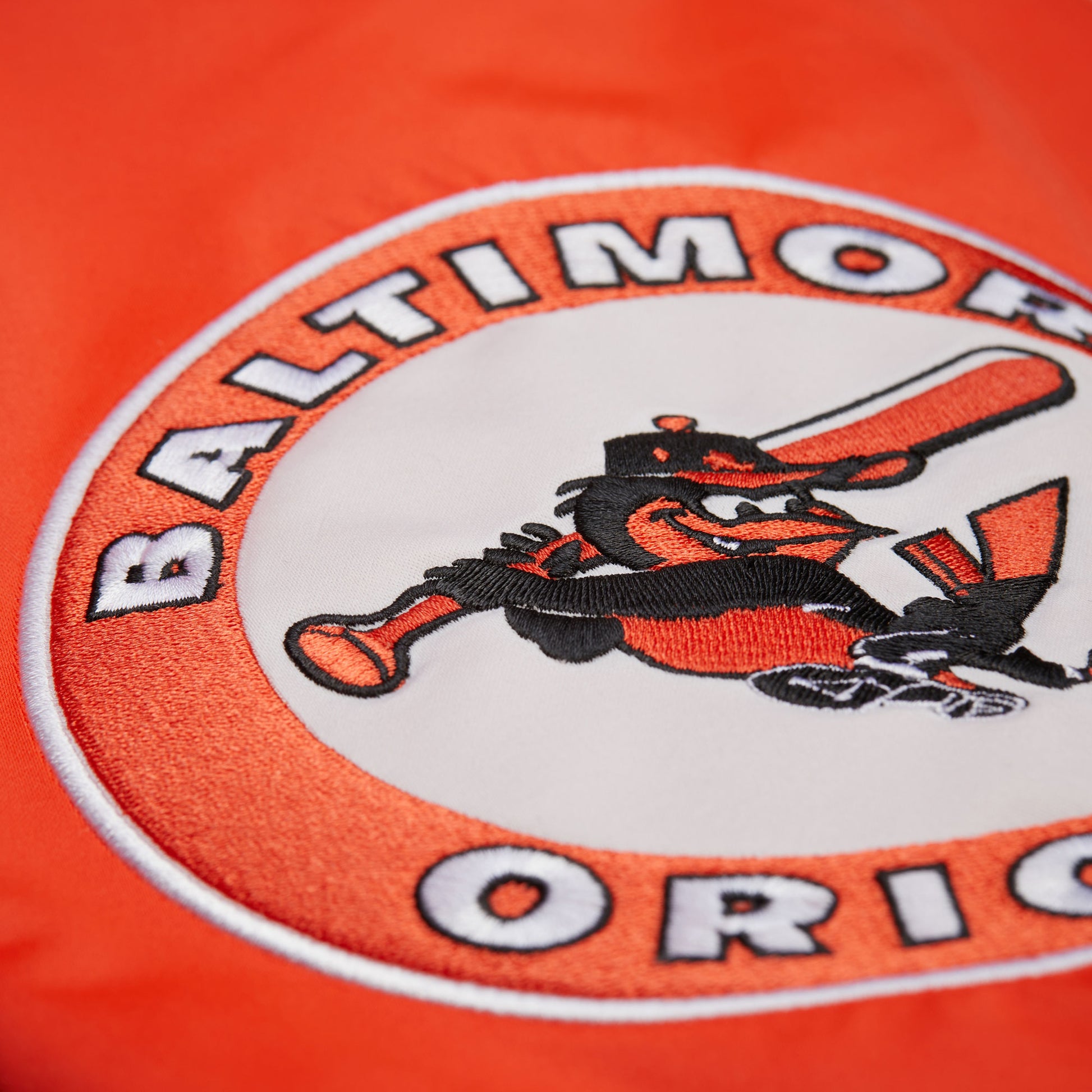 Add a touch of classic Baltimore Orioles style to your wardrobe with this Team Origins Satin Full-Snap Jacket. The contrast color sleeves and embroidered team logos along the sleeves, chest, and back create a bold statement of Baltimore Orioles fandom. With a comfortable satin construction and rib-knit accents, this jacket is perfect for showcasing your team spirit on game day or any day.