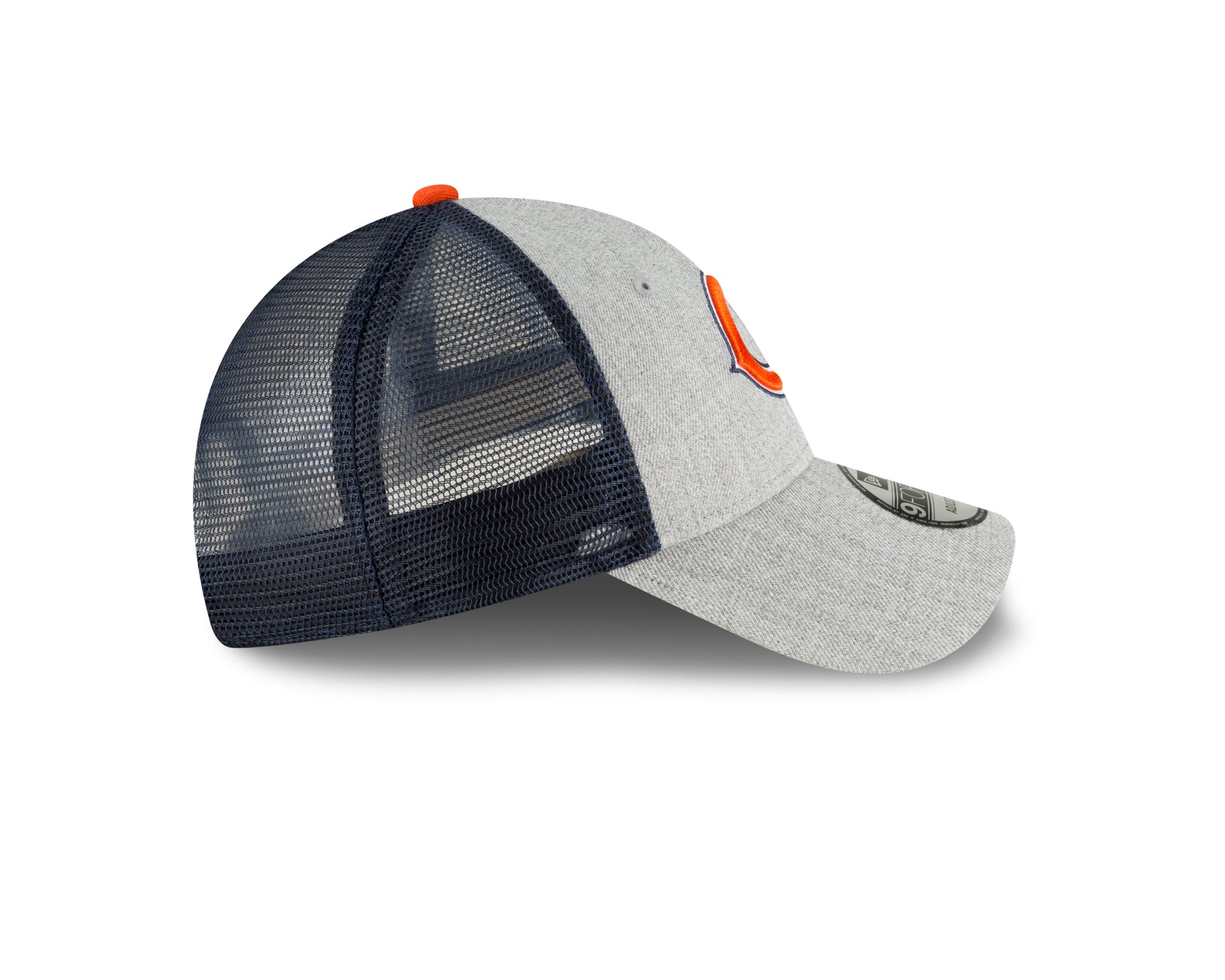Bears fans!!! You'll want to sport this brand new Heathred Trucker Mesh 9Forty Adjustable Snap back Cap. This cap features traditional logo in front. with adjustable snap back. Breathable mesh back with New Era logo on left side.