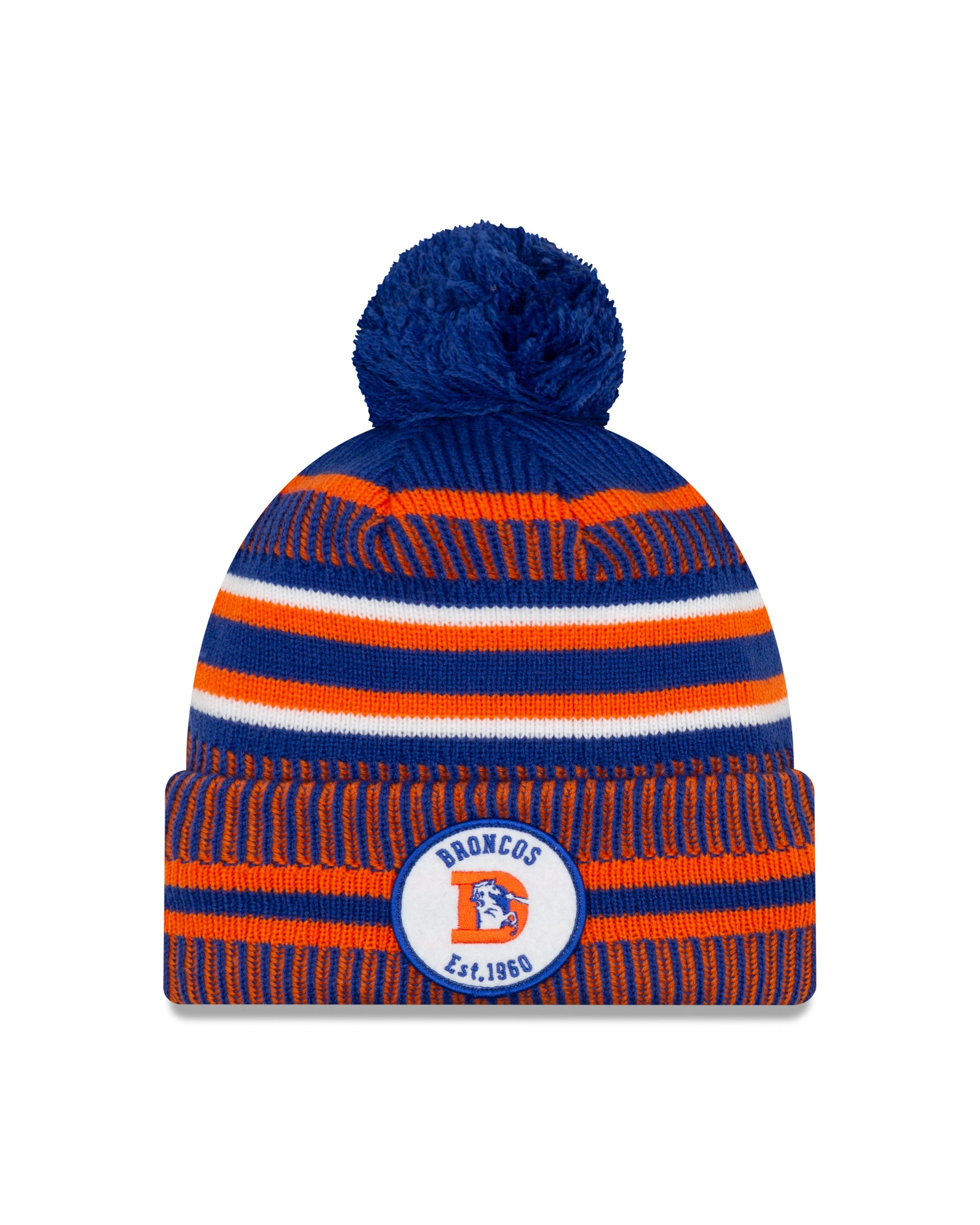 Denver Broncos New Era Sideline Sport Cuffed Pom Knit Hat- Blue