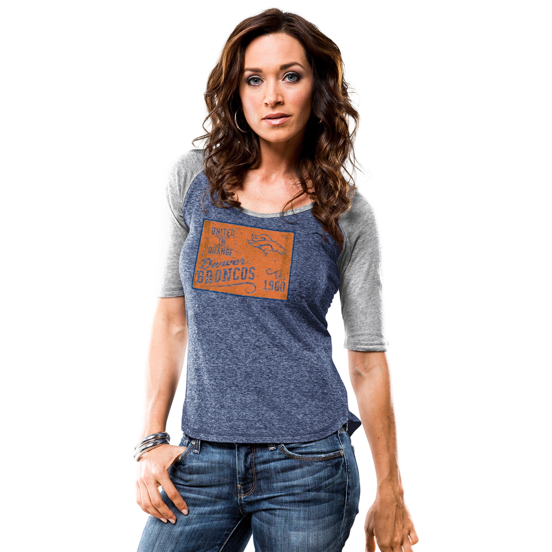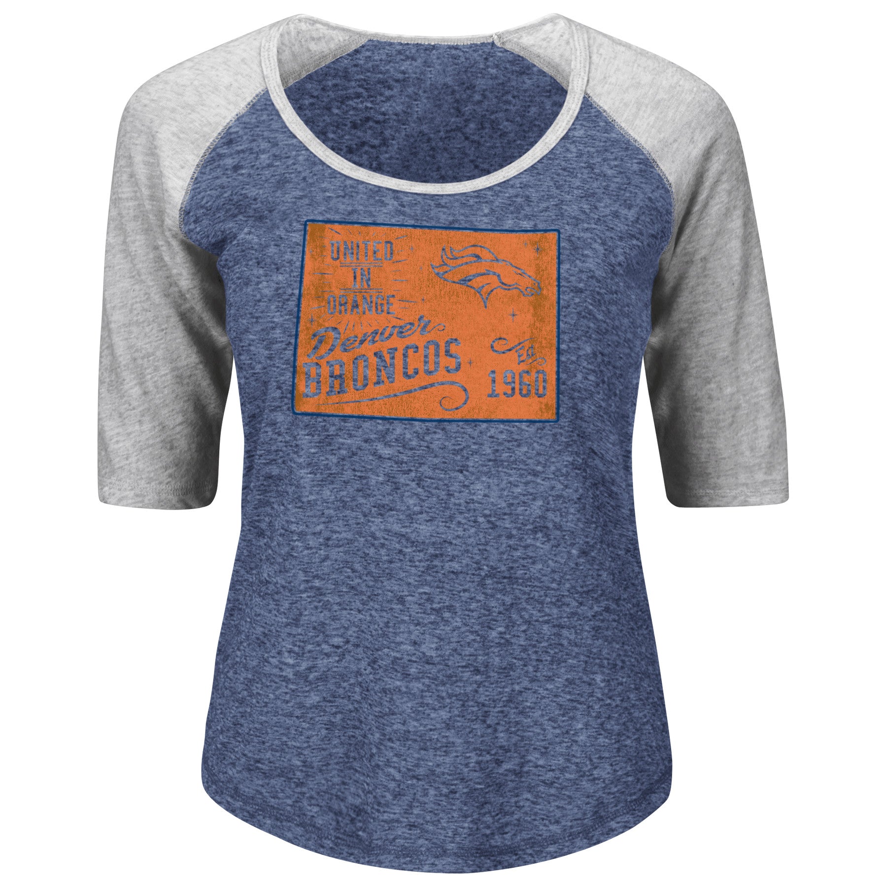 Denver Broncos Pride Rules Womens 3/4 Sleeve T-Shirt - Blue / Gray