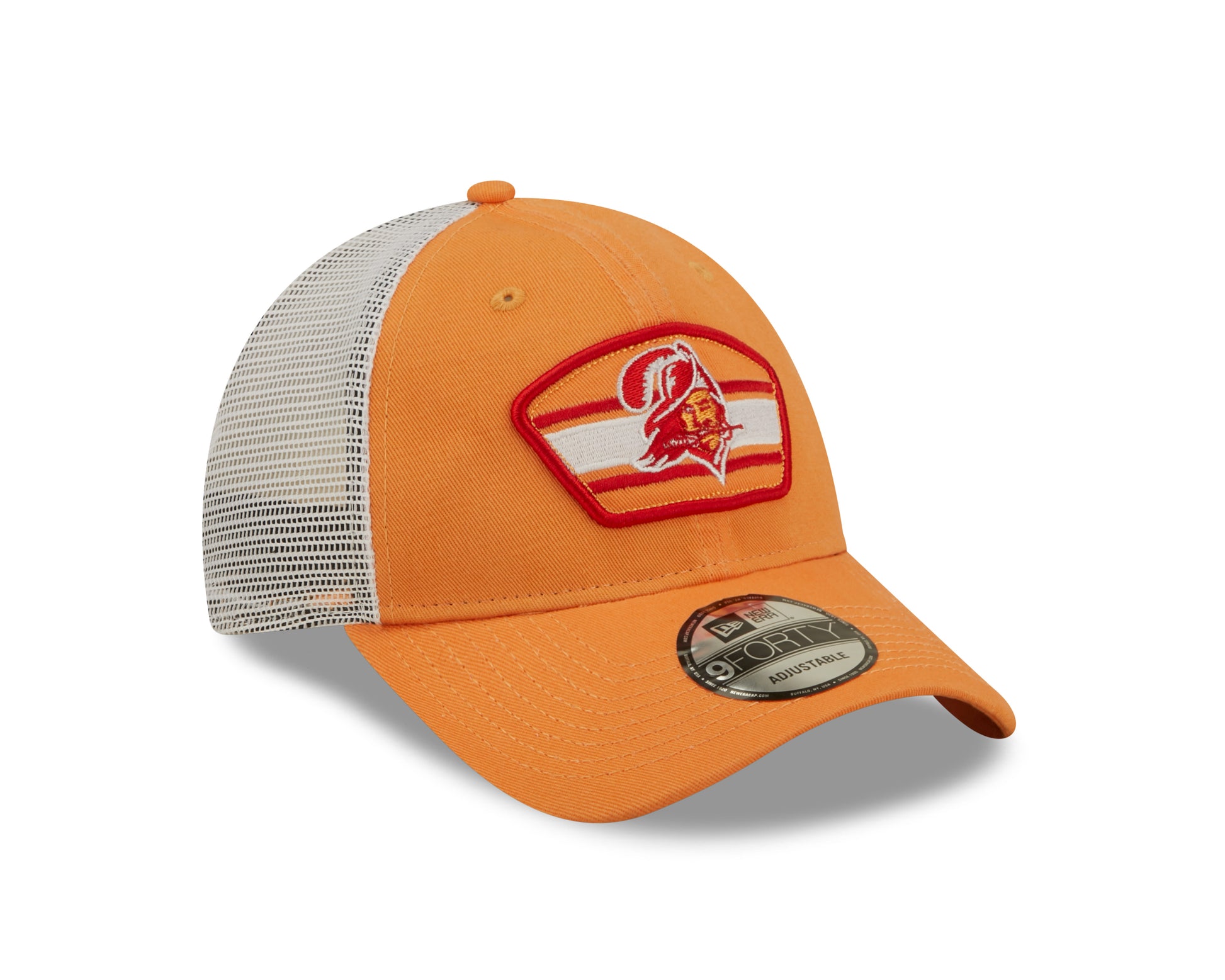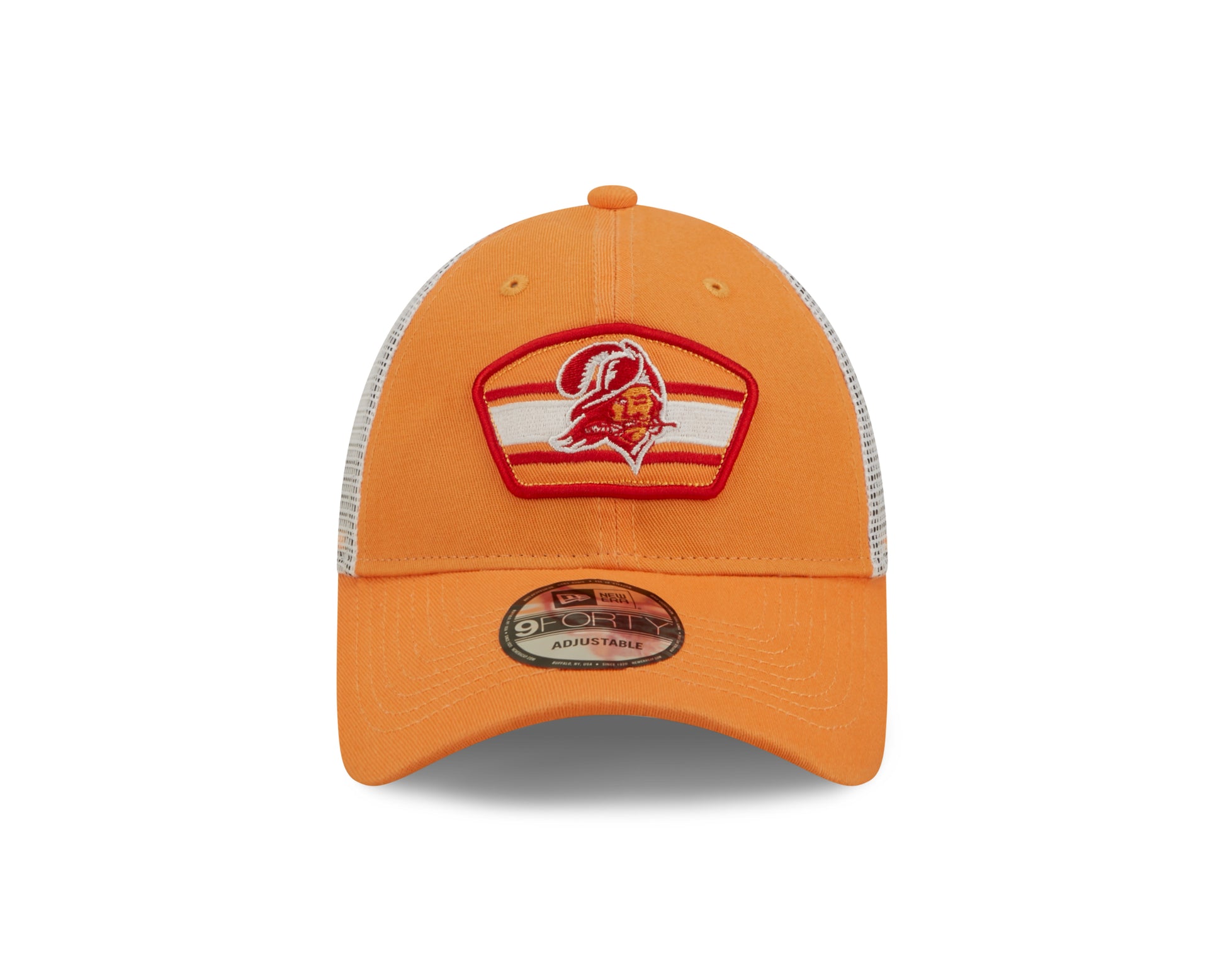 Tampa Bay Buccaneers New Era Logo Patch Trucker Mesh 9Forty Snap Back Hat - Orange