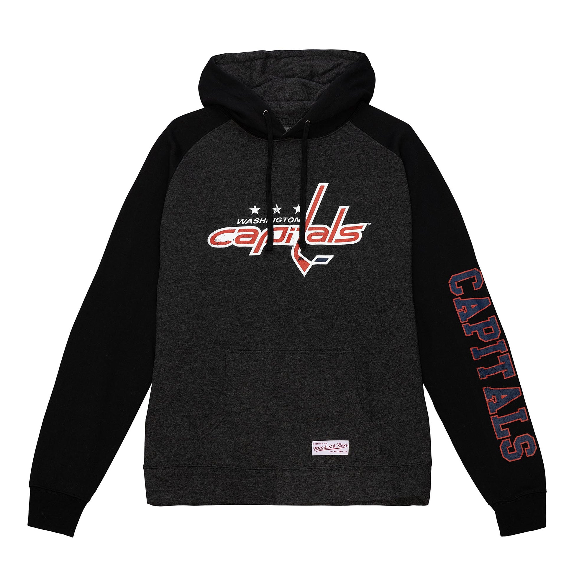 The Mitchell & Ness Heather Black Washington Capitals Distressed Logo Raglan Pullover Hoodie is a must-have for any true Washington Capitals fan. This midweight hoodie features a distressed screen print of the Capitals logo, a contrast-color hood lining, and a cozy fleece lining to keep you warm on chilly game days. The raglan sleeves and front pouch pocket add a touch of style and functionality, while the drawstring hood provides extra warmth and protection from the elements. Whether you're cheering on the Capitals at the rink or just showing your support around town, this hoodie is the perfect way to represent your favorite team.