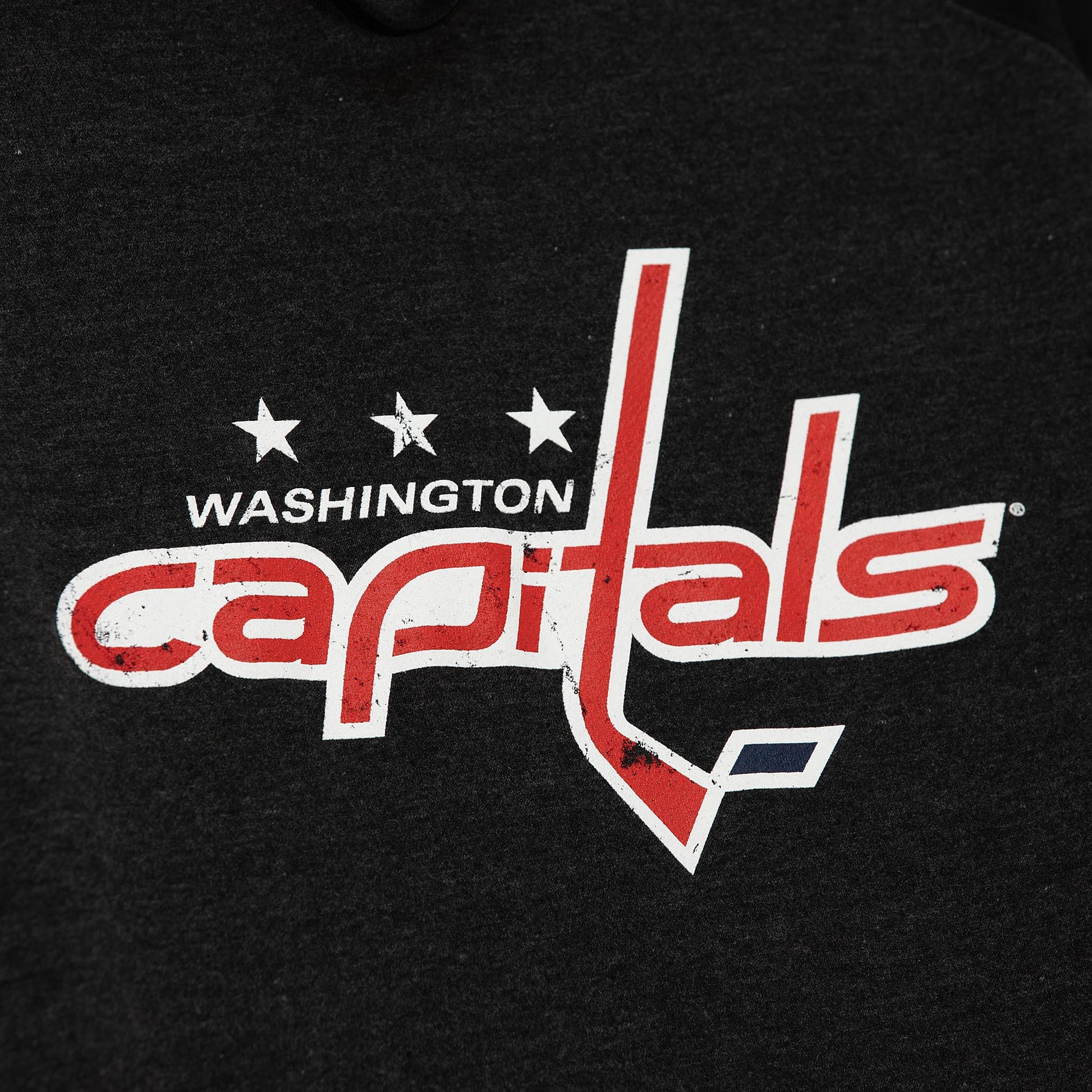 Washington Capitals Mitchell & Ness Distressed Logo Raglan Pullover Hoodie - Heather Black