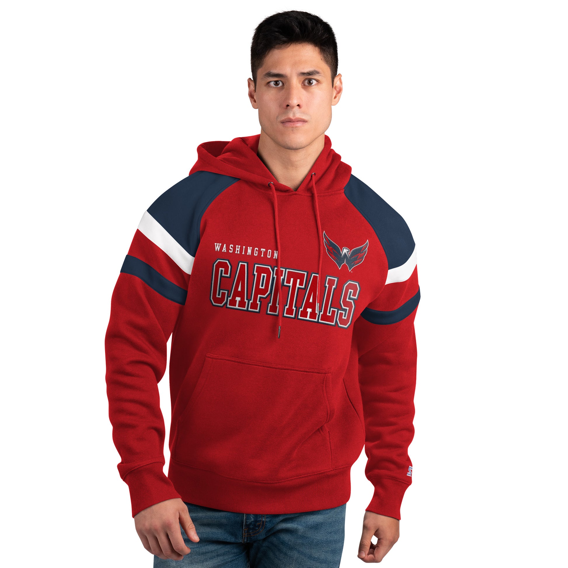 Show your Capitals pride when your Caps hit the Ice. You'll want to wear this Draft Fleece Pullover Hoodie from Starter. This Hoodie features team embroidered name and logo on the front . Hood with Draw Cords. With 2 front pockets. Front pouch pockets for keeping your hands warm. Add this piece of Capitals apparel to your collection today. This sweatshirt will keep you warm while cheering on your BOYS!!.