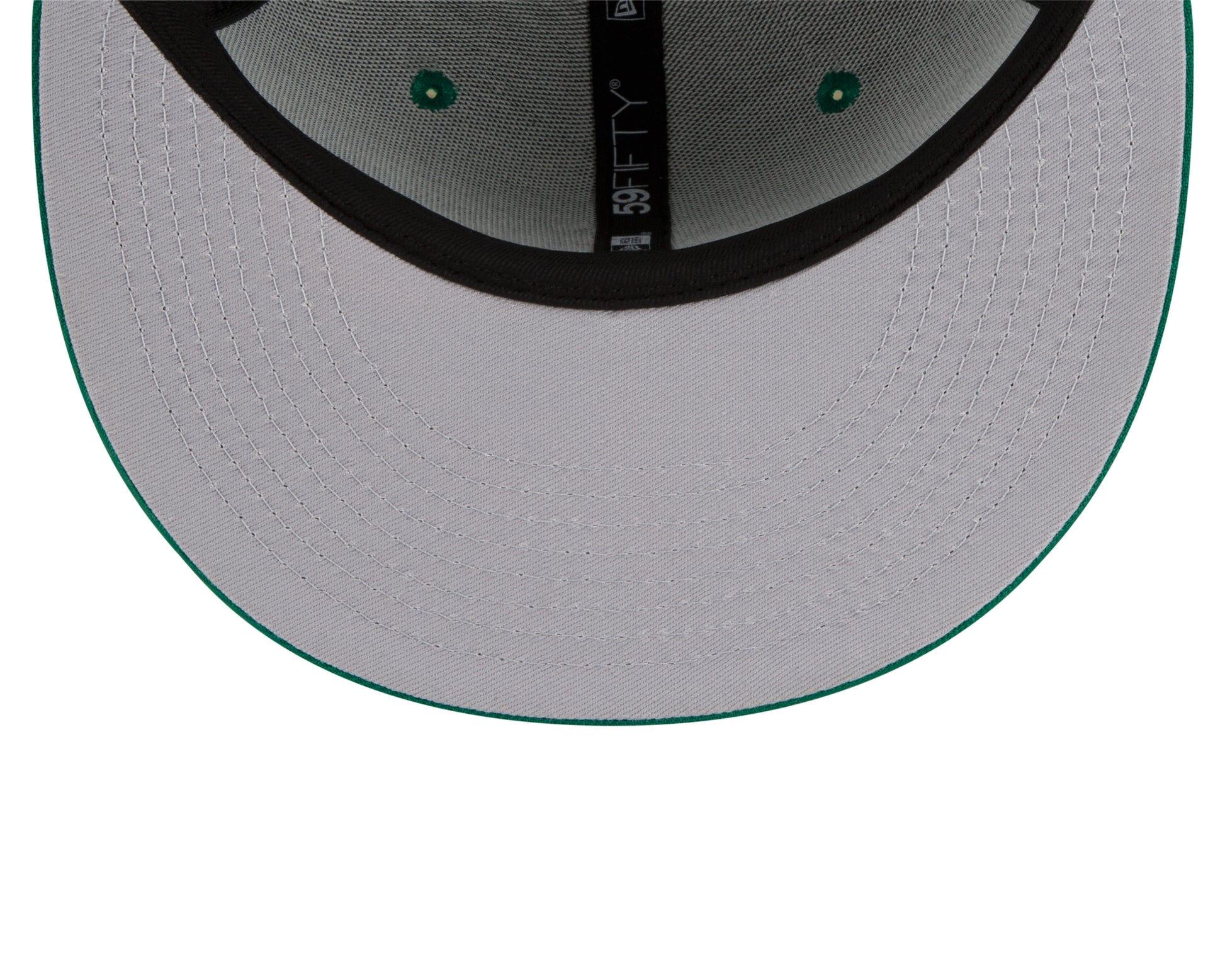 The 59FIFTY® cap is New Era's signature fitted cap. It is a structured cap with a flat visor, that has the ability to curve. The 59FIFTY® cap has a full crown and six panels. The cap has eight rows of visor stitching and a button on top.