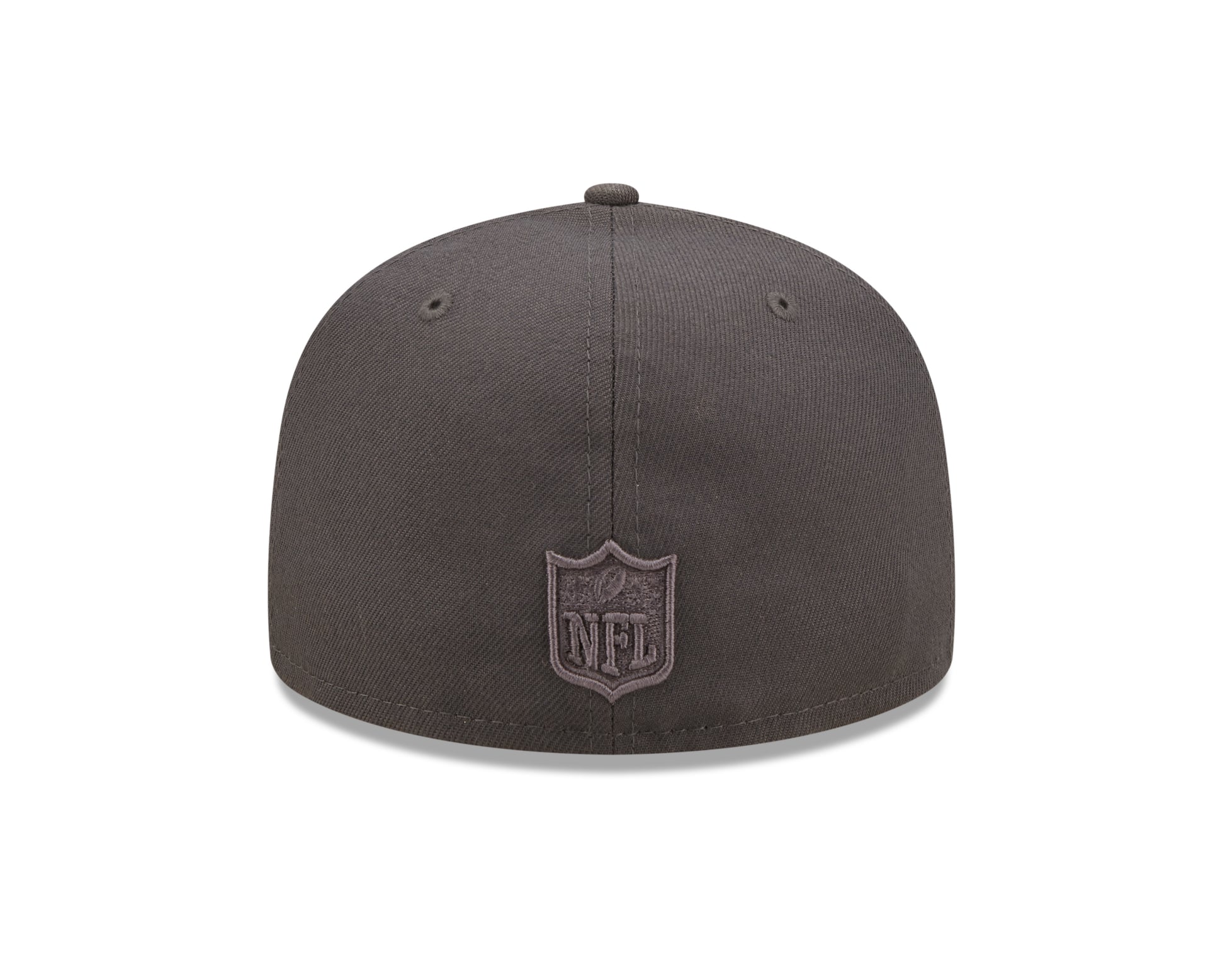 Sport this New Era Slate Color Pack 59FIFTY Fitted Hat. This fitted hat features a 3D Gray tonal team logo on the crown . Gray under visor, NFL shield on the back and New Era flag on left side. Sharp graphics and bold solid-color design ensure your die-hard team pride is unquestionable. This cap is also built with a high crown, fitted closure and flat bill to give you a trendy option to support your team.