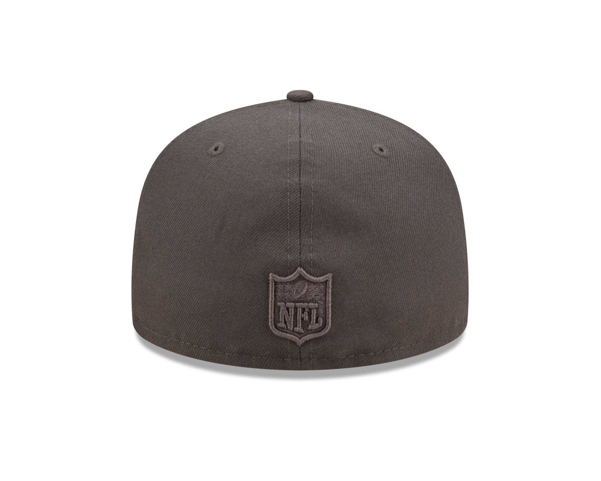 Sport this New Era Slate Color Pack 59FIFTY Fitted Hat. This fitted hat features a 3D Gray tonal team logo on the crown . Gray under visor, NFL shield on the back and New Era flag on left side. Sharp graphics and bold solid-color design ensure your die-hard team pride is unquestionable. This cap is also built with a high crown, fitted closure and flat bill to give you a trendy option to support your team.