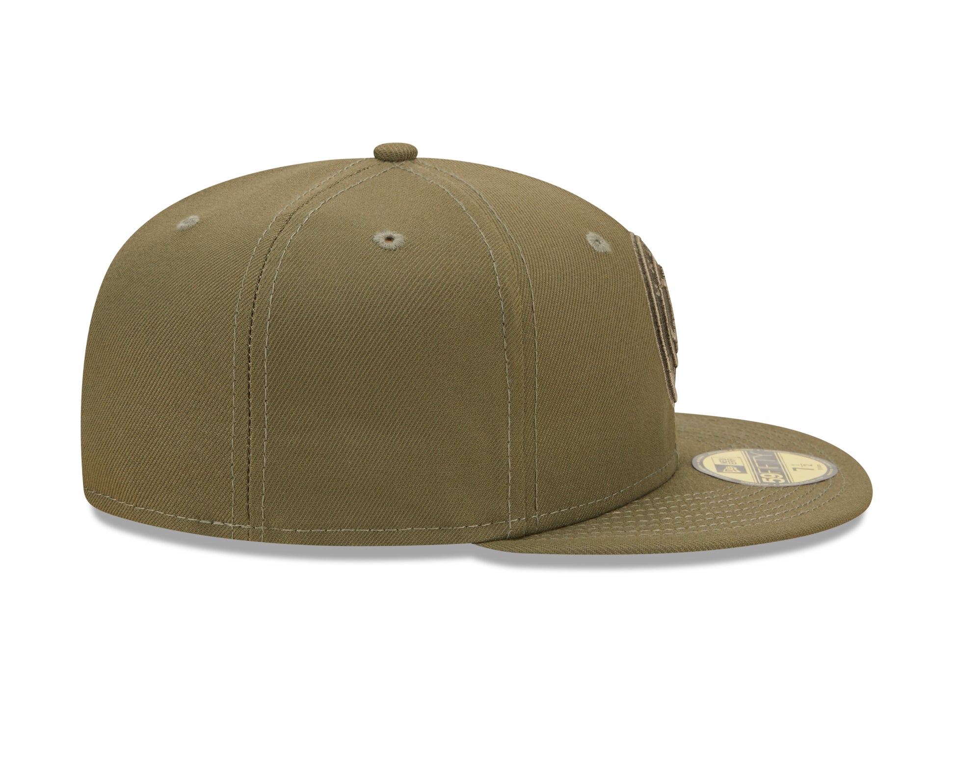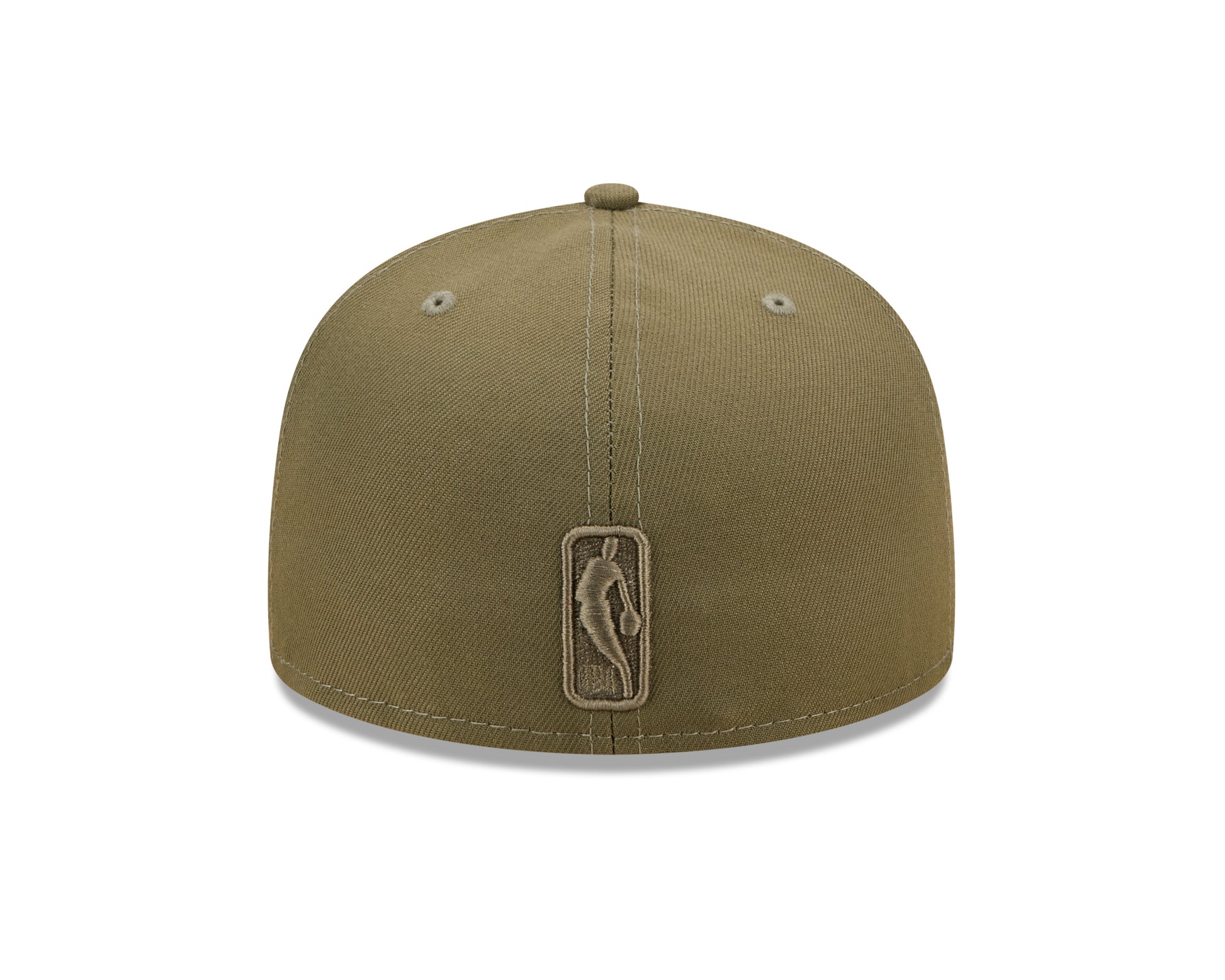 Sport this New Era Olive Color Pack 59FIFTY Fitted Hat. This fitted hat features a 3D Olive tonal team logo on the crown . Gray under visor, NBA LogoMan on the back and New Era flag on left side. Sharp graphics and bold solid-color design ensure your die-hard team pride is unquestionable. This cap is also built with a high crown, fitted closure and flat bill to give you a trendy option to support your team.