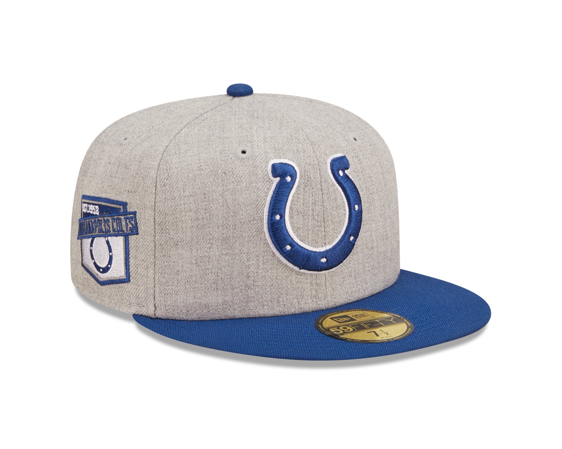Colts Fans!! Sport this New Era Established Year Heather Side Patch 59FIFTY Fitted Hat. This fitted hat features a 3D team logo on the crown. Team patch on left side featuring team logo and year of inception. NFL shield on the back and New Era flag on left side.