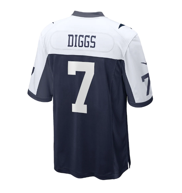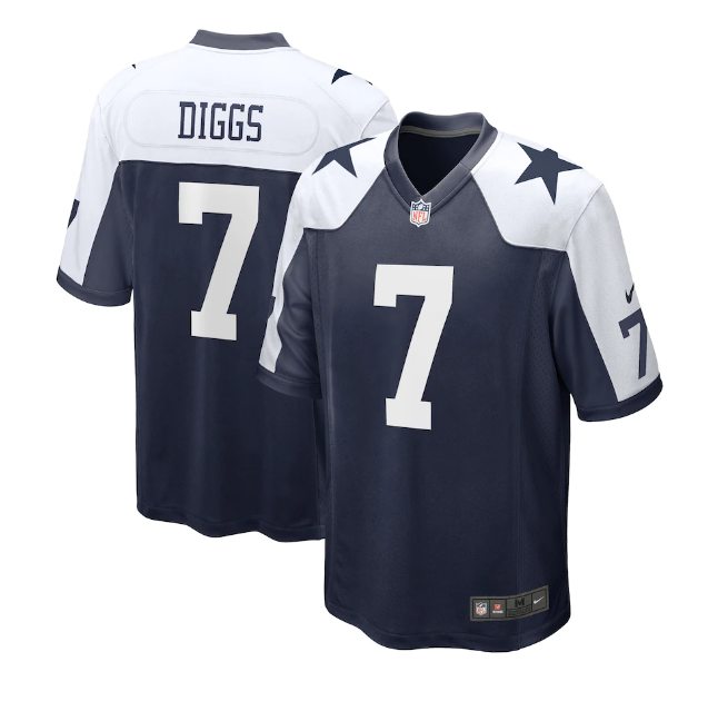 Officially Licensed Made By Nike Dallas fan's make sure those young proteges are ready for the grid iron on Sundays! Be proud to sport this Nike Dallas Cowboys Navy Game Jersey. Inspired by the gear that Trevon Diggs will wear on the field and engineered for total comfort, this replica jersey features a tailored fit designed to show off the same movement your favorite player wears on the field, a no-tag neck label that offers clean comfort and strategic ventilation for breathability. Boasting bold contrast color detailing with team graphics and Trevon Diggs number printed over the front and back. This is the perfect way to show off that true Cowboy pride. Most woman will also find the youth fit to be the best for them as well.