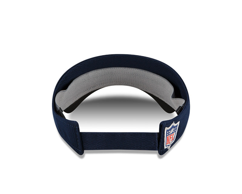 New year, new goals. Start this summer and season off in style with the Official Training Camp Collection from New Era. This adjustable Visor is constructed of Digi-Tech performance fabric. On the front crown an embroidered grey and team color logo is complimented by a uniform inspired pattern.