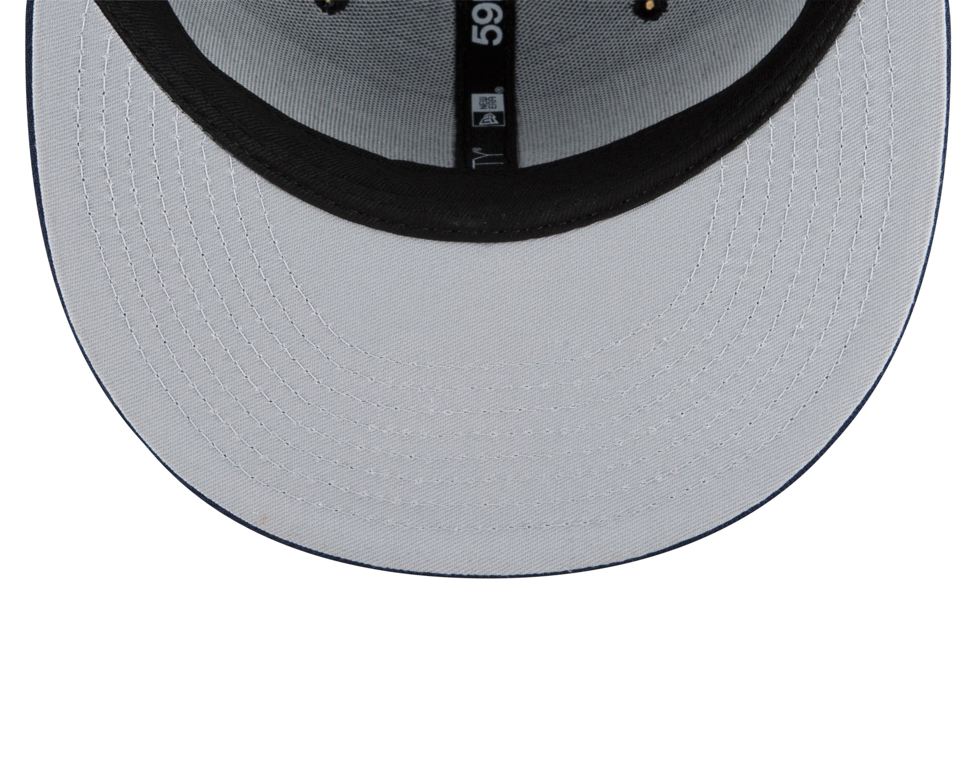 The 59FIFTY® cap is New Era's signature fitted cap. It is a structured cap with a flat visor, that has the ability to curve. The 59FIFTY® cap has a full crown and six panels. The cap has eight rows of visor stitching and a button on top.