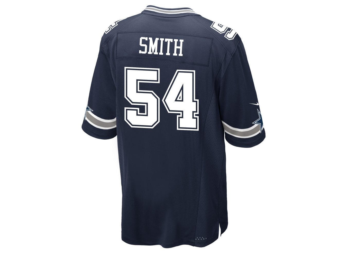 You know you are a true Cowboys fan! Your going to want to show off in this Nike Dallas Cowboys Jaylon Smith Jersey By Nike. Inspired by the actual gear that Jaylon wears on the field, this jersey boasts the Cowboys design and features a no-tag neck label that offers comfort and strategic ventilation, bold contrast color detailing. Silicone print Name & numbers offer lightweight durability. Smith Name & Number on the back. Sleeves feature the Nike Swoosh. When going to the game or just showing off around town you'll want to sport this Game Jersey to show off your True Cowboys pride.