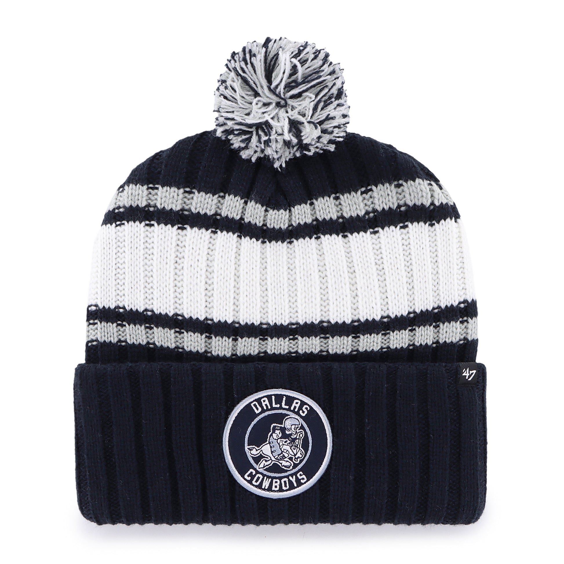 Liven up your winter wardrobe with this Dallas Cowboys Plateau cuffed knit hat from '47. It features an embroidered team patch and a matching stripe design. A solid pom completes the vibrant look of this Dallas Cowboys headwear.