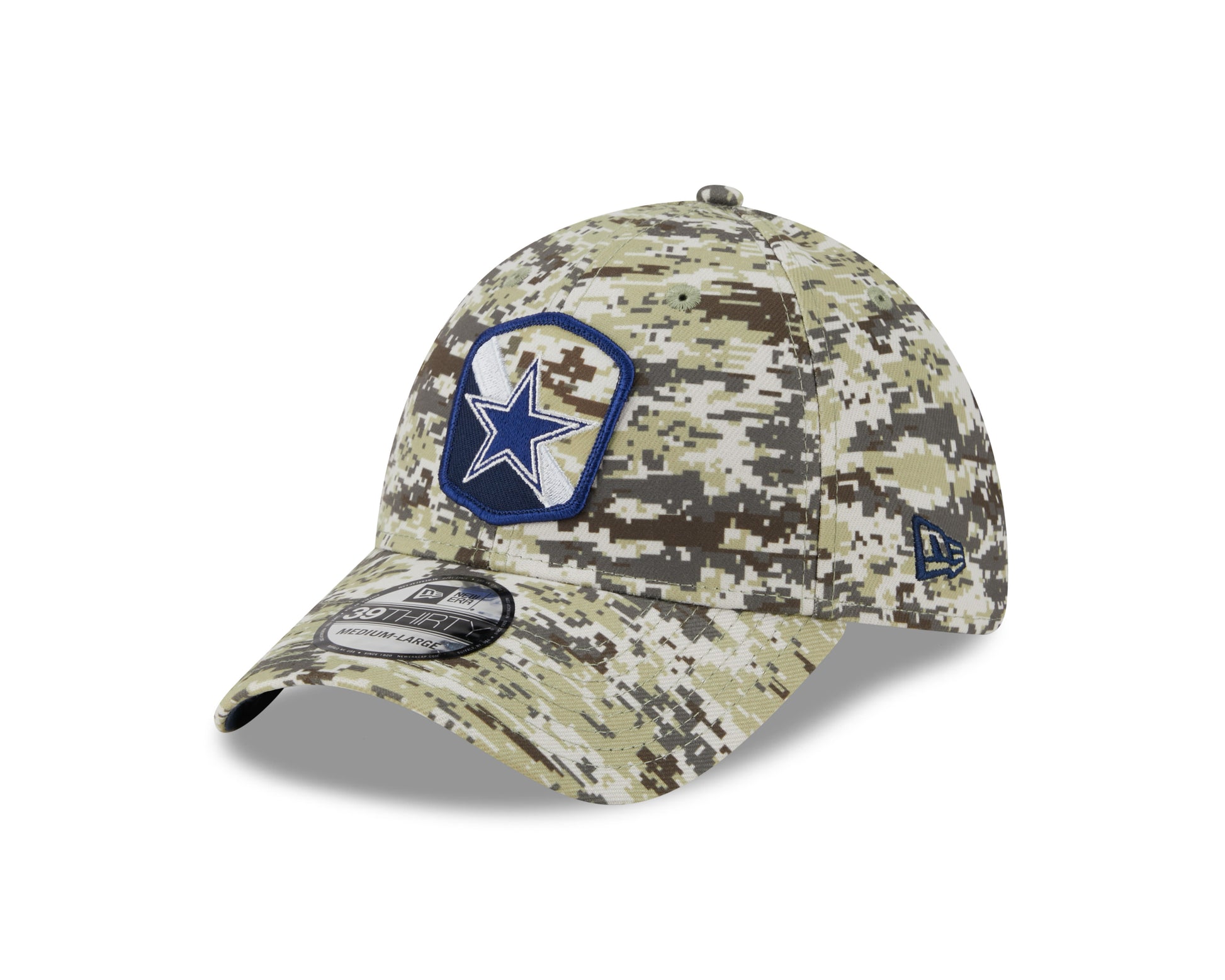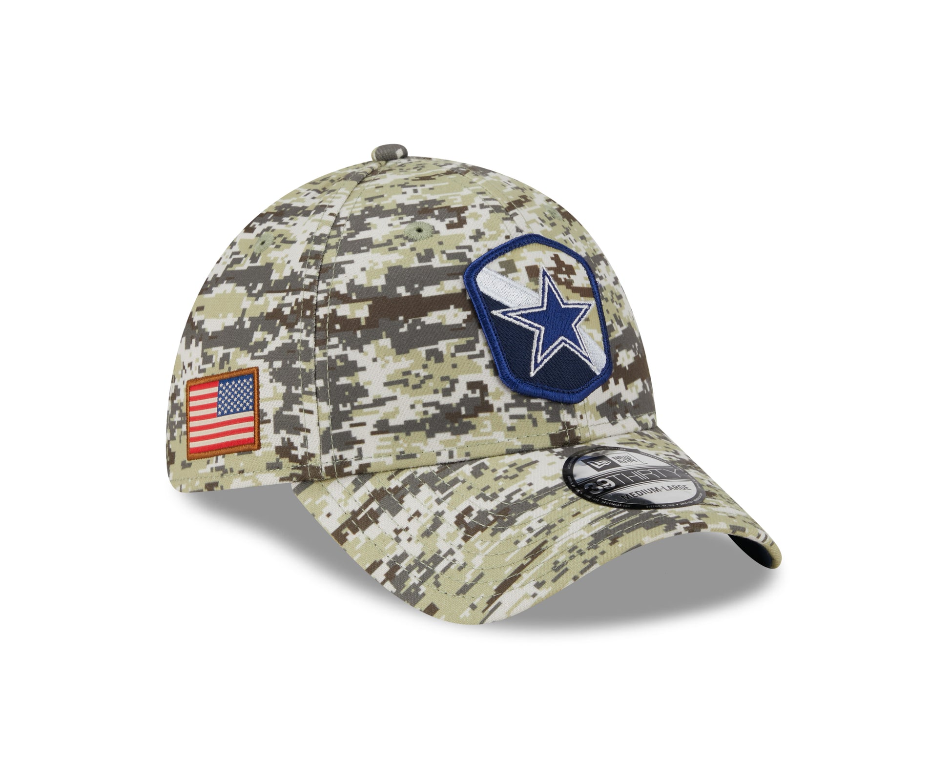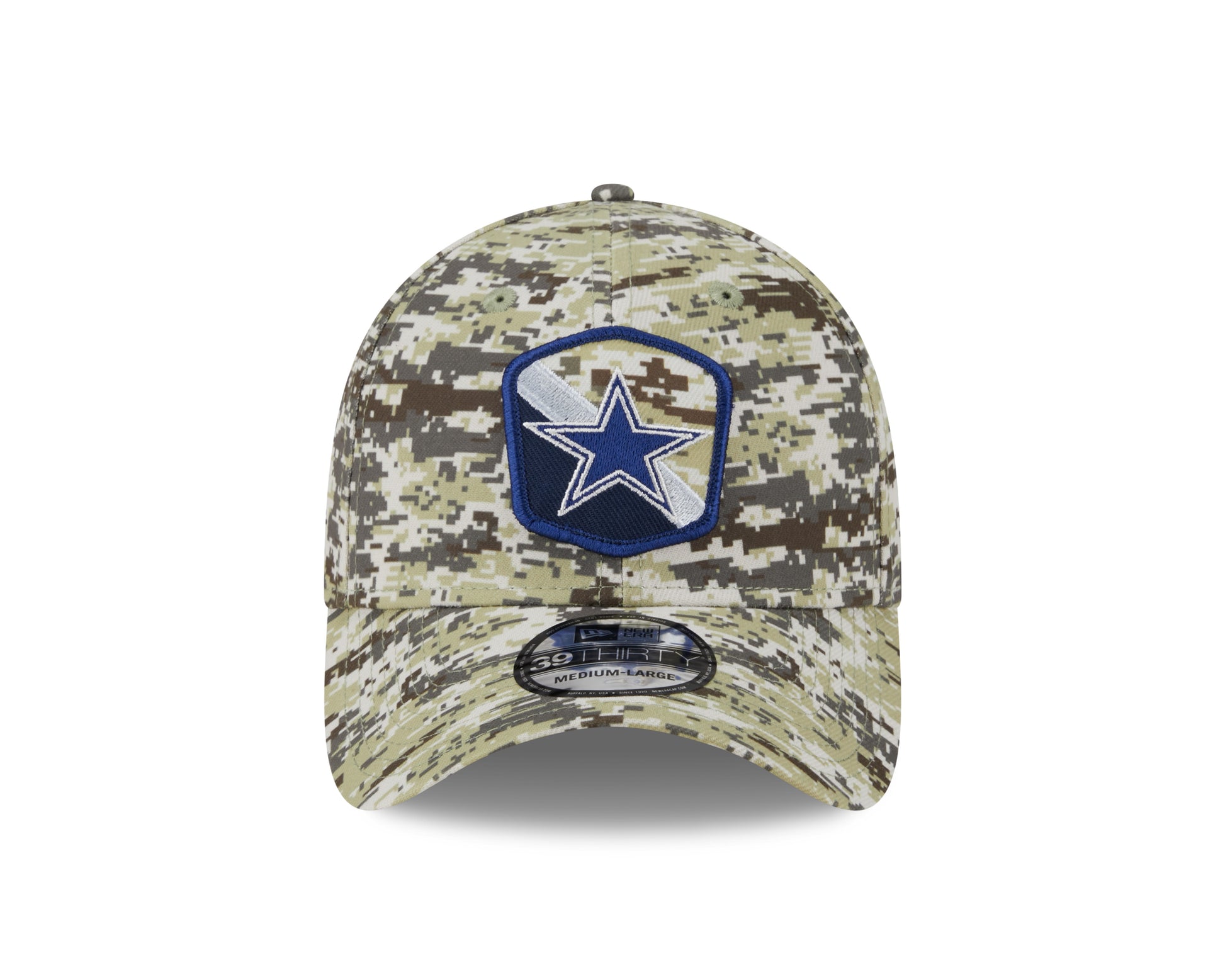 Honor our service members while supporting the Dallas Cowboys with this 2023 Salute To Service 39THIRTY Flex Hat. This New Era hat features an embroidered Dallas Cowboys logo at the front panels with a contrast camo pattern, and Blue undervisor and the official NFL Salute to Service patch at the rear. The right-wear side displays an American Flag patch. The NFL does not profit from the sale of Salute to Service products. Charitable contributions are awarded by the NFL Foundation to the NFL's military nonprofit partners. For more information, please visit www.NFL.com/causes/salute.