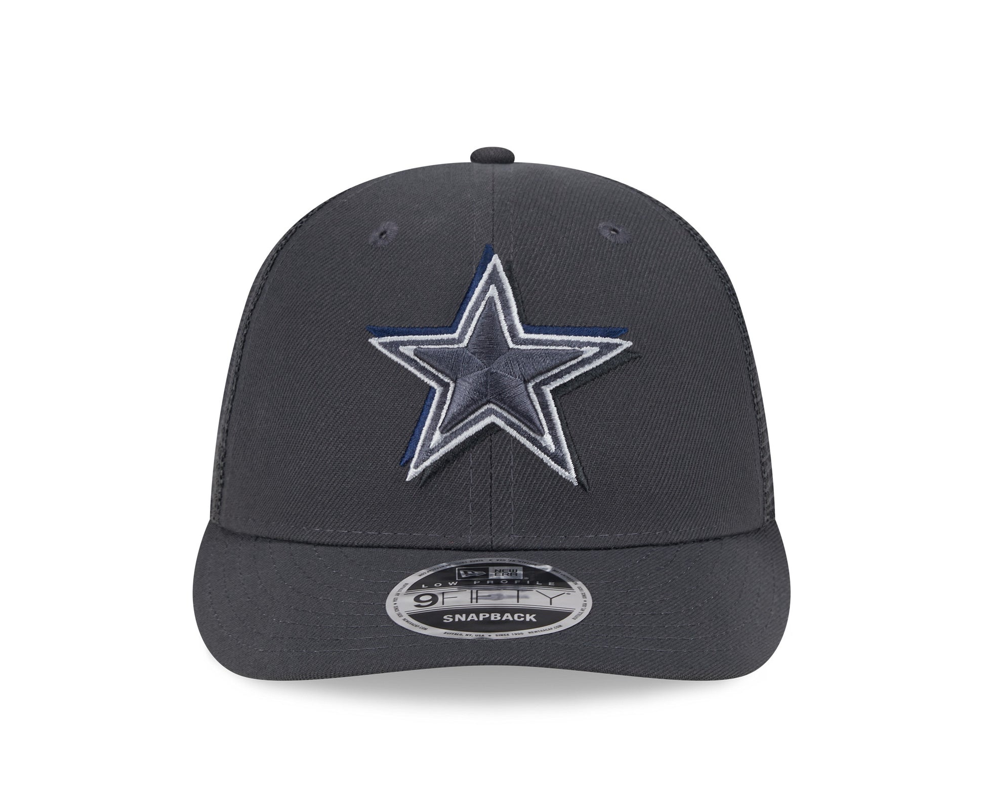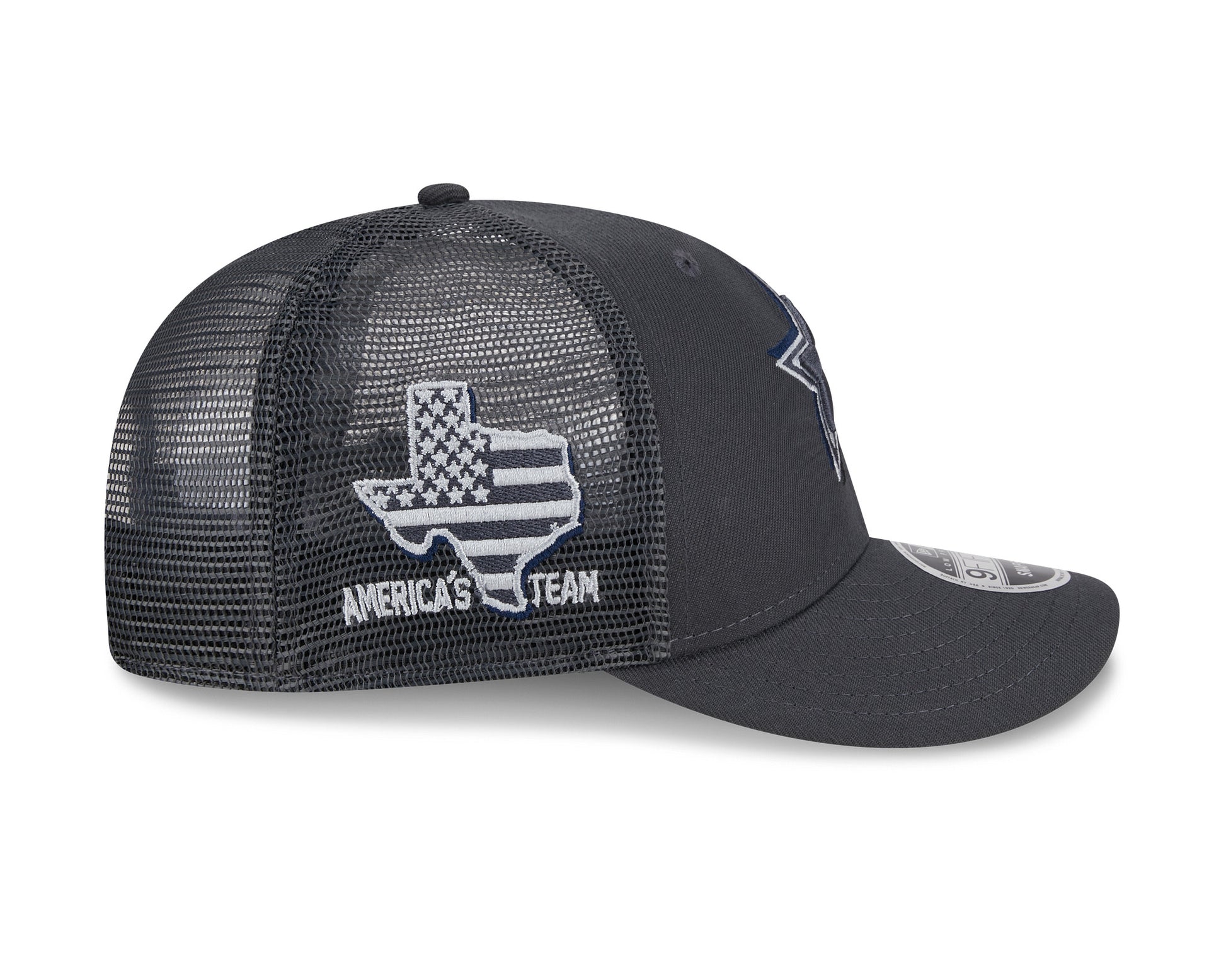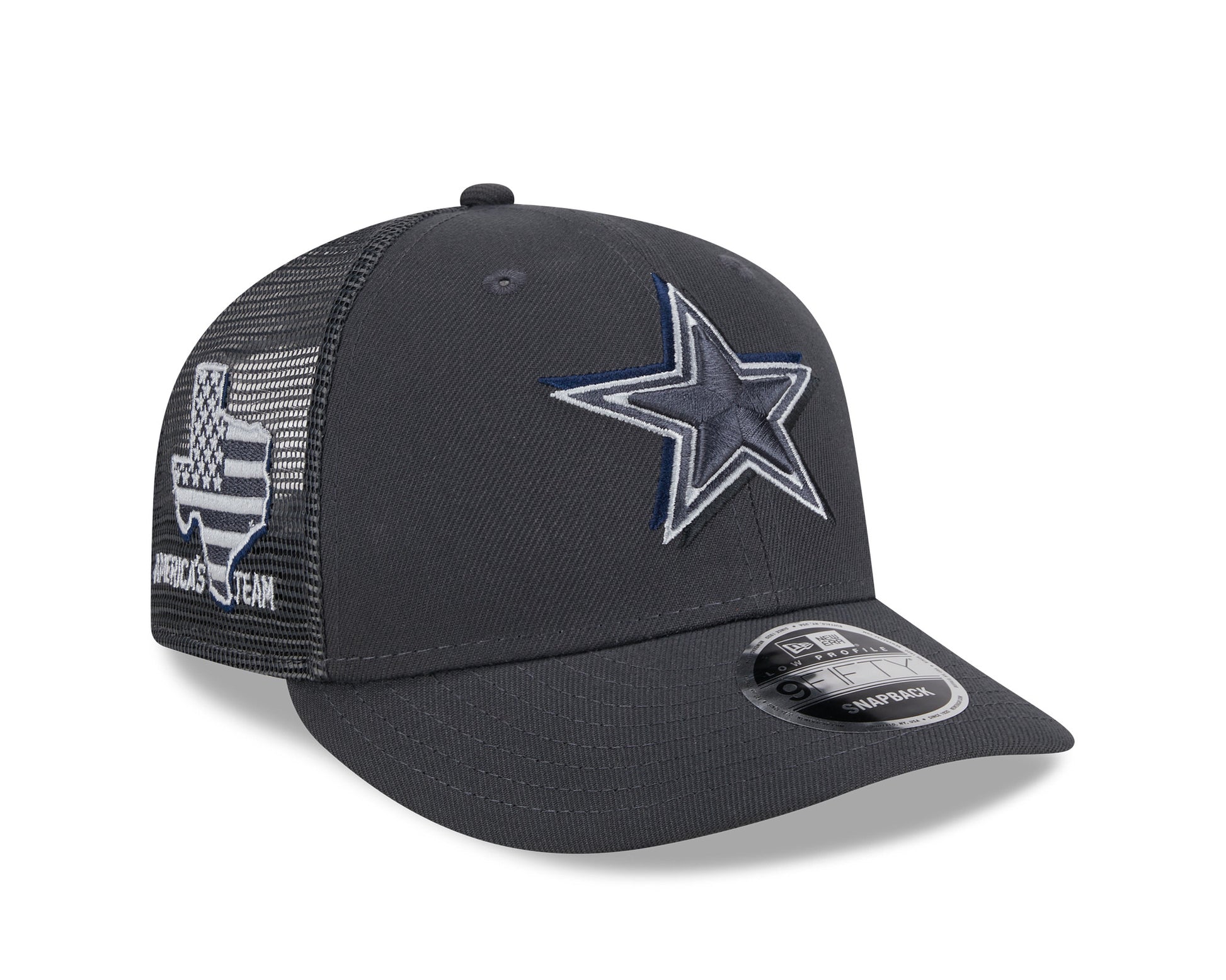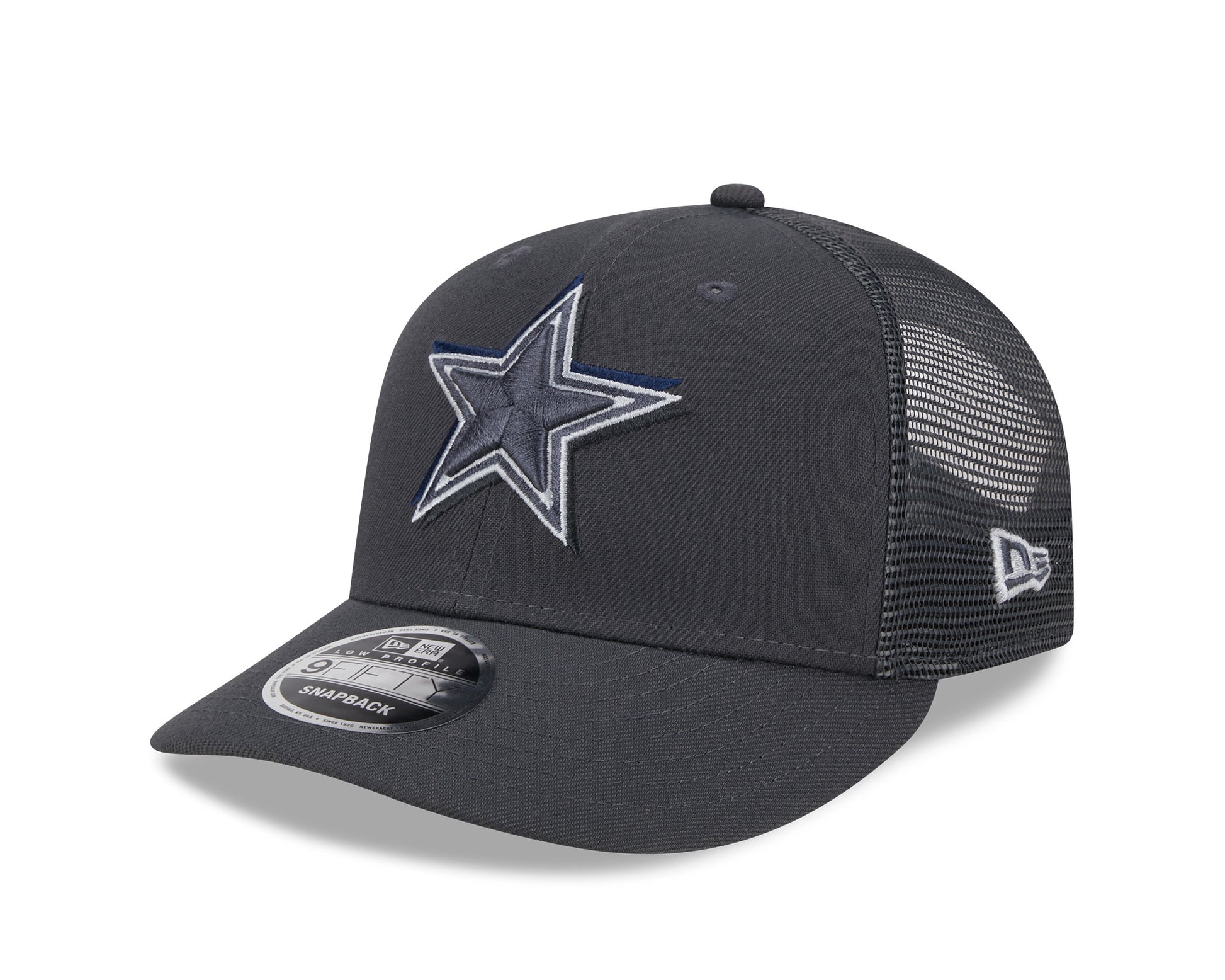 Cheer for the newest members of your favorite team with this Dallas Cowboys Low Profile Trucker 9FIFTY Snapback Hat from the New Era 2024 NFL Draft collection. This 2024 NFL Draft hat features your squad's embroidered logo with a drop shadow on the front crown and a team-specific regional patch embroidered on the right wear side. The look is completed by an embroidered team-color NFL logo on the center rear of the cap, ensuring no one questions your allegiance to the Dallas Cowboys.