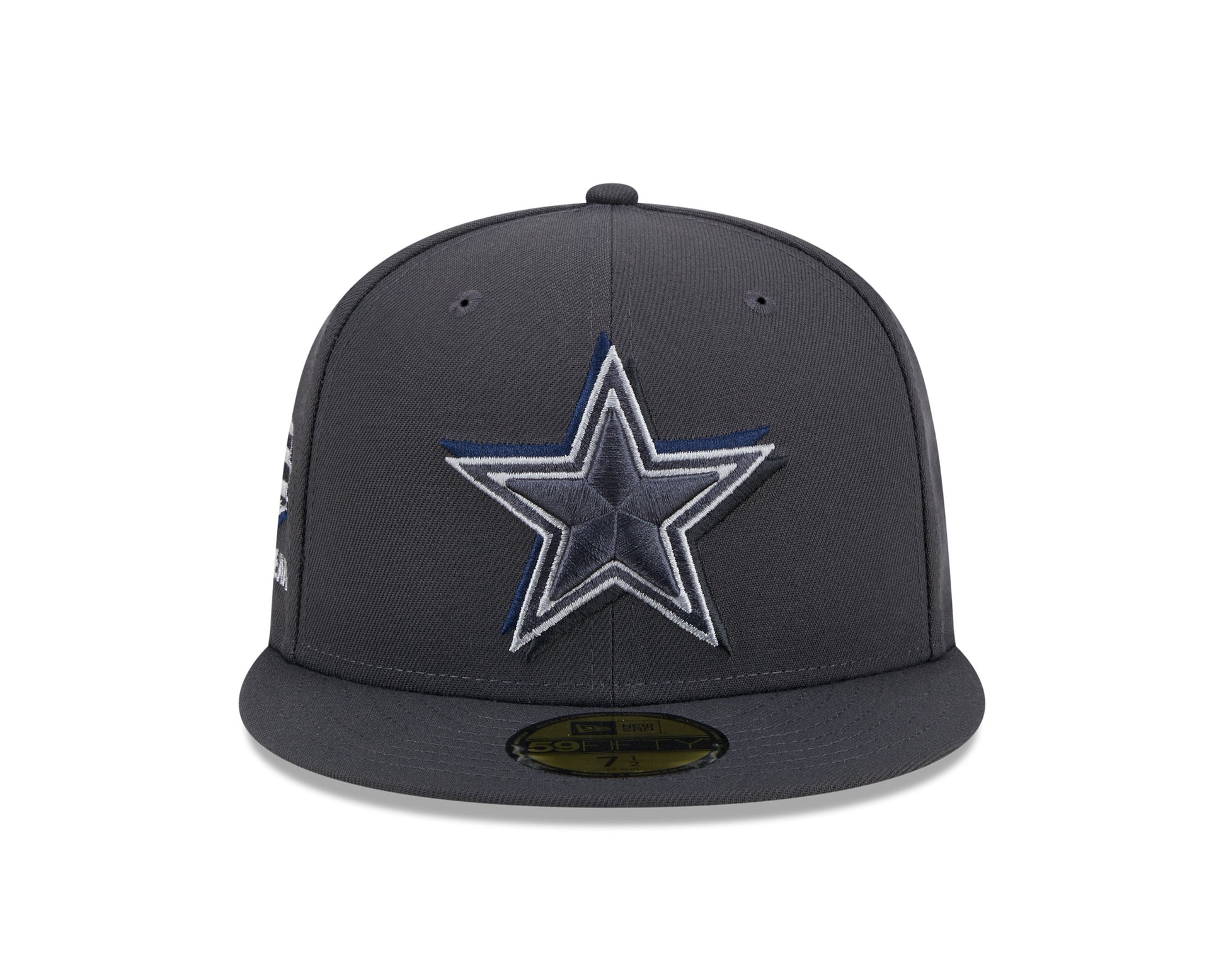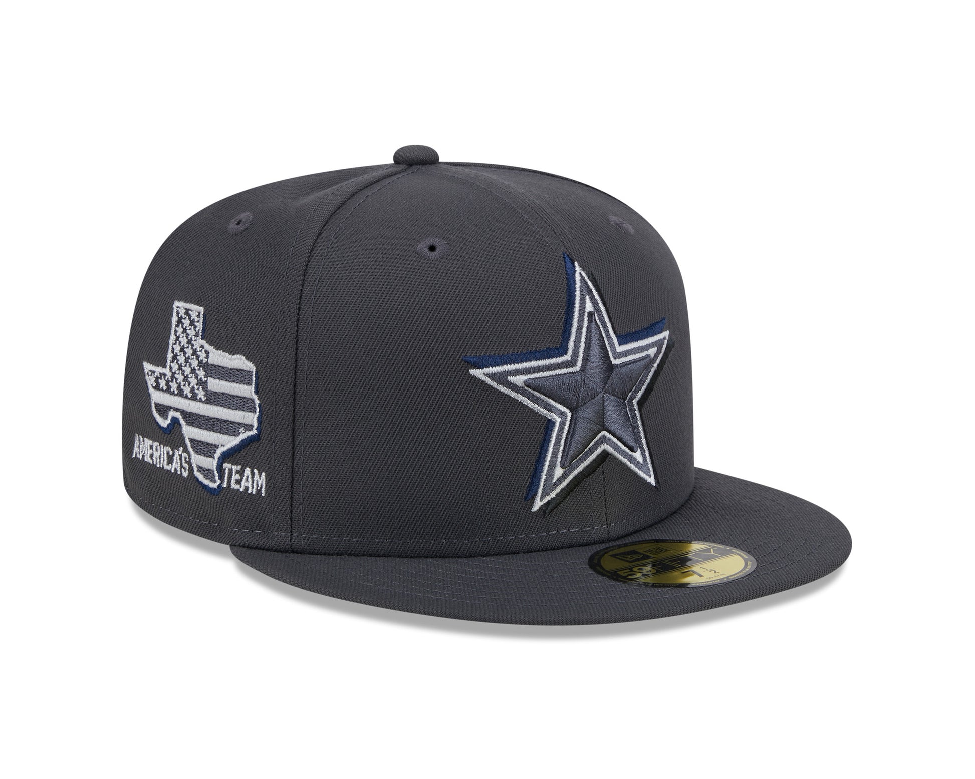 Cheer for the newest members of your favorite team with this Dallas Cowboys On Stage 59FIFTY Fitted Hat from the New Era Official 2024 NFL Draft collection. The graphite polyester cap features your squad's embroidered logo with a drop shadow on the front crown and a team-specific regional patch embroidered on the right wear side. The fitted look is completed by an embroidered team-color NFL logo on the center rear of the hat, ensuring no one questions your allegiance to the Dallas Cowboy.
