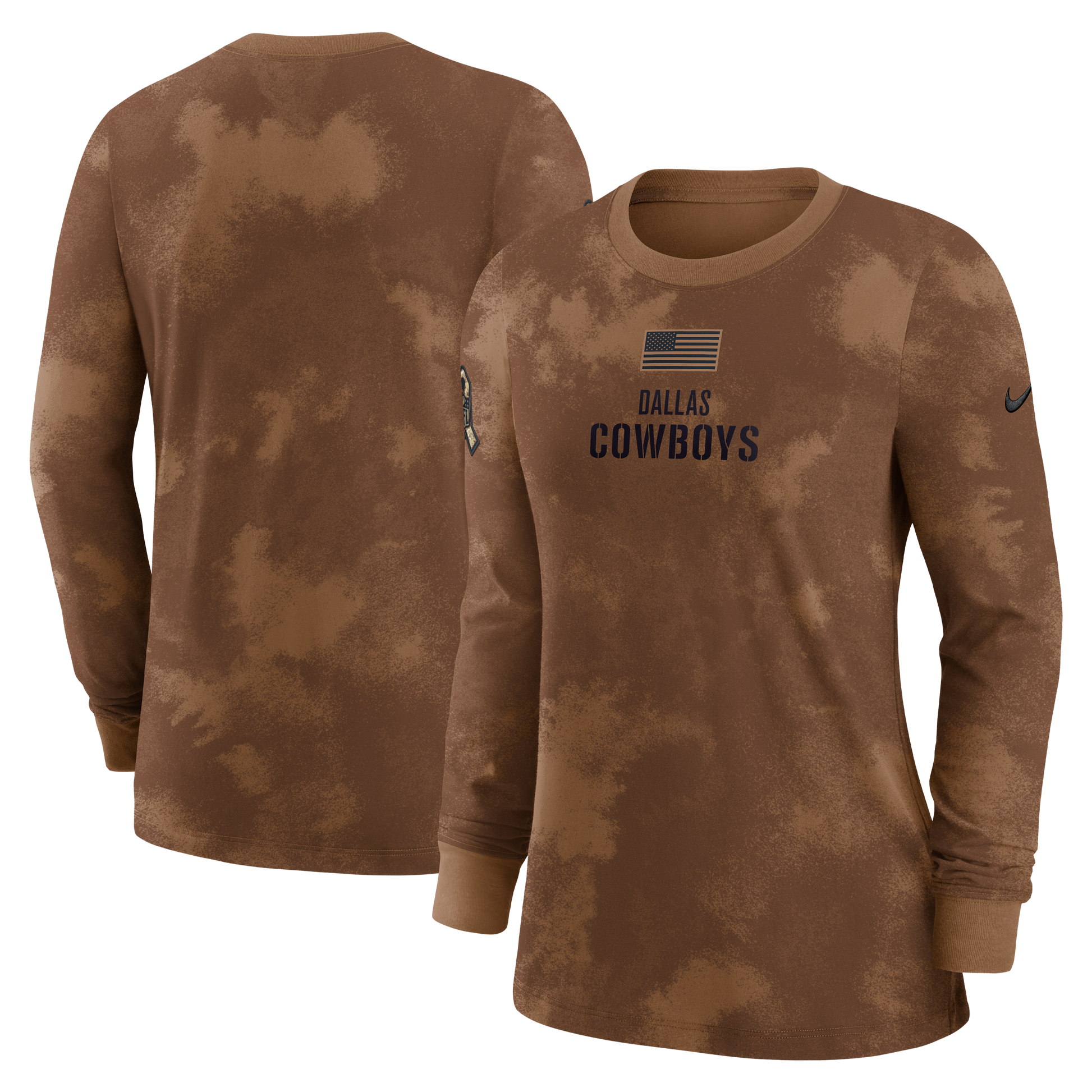 Dallas Cowboys Nike Women's Salute to Service Long Sleeve Shirt-Brown