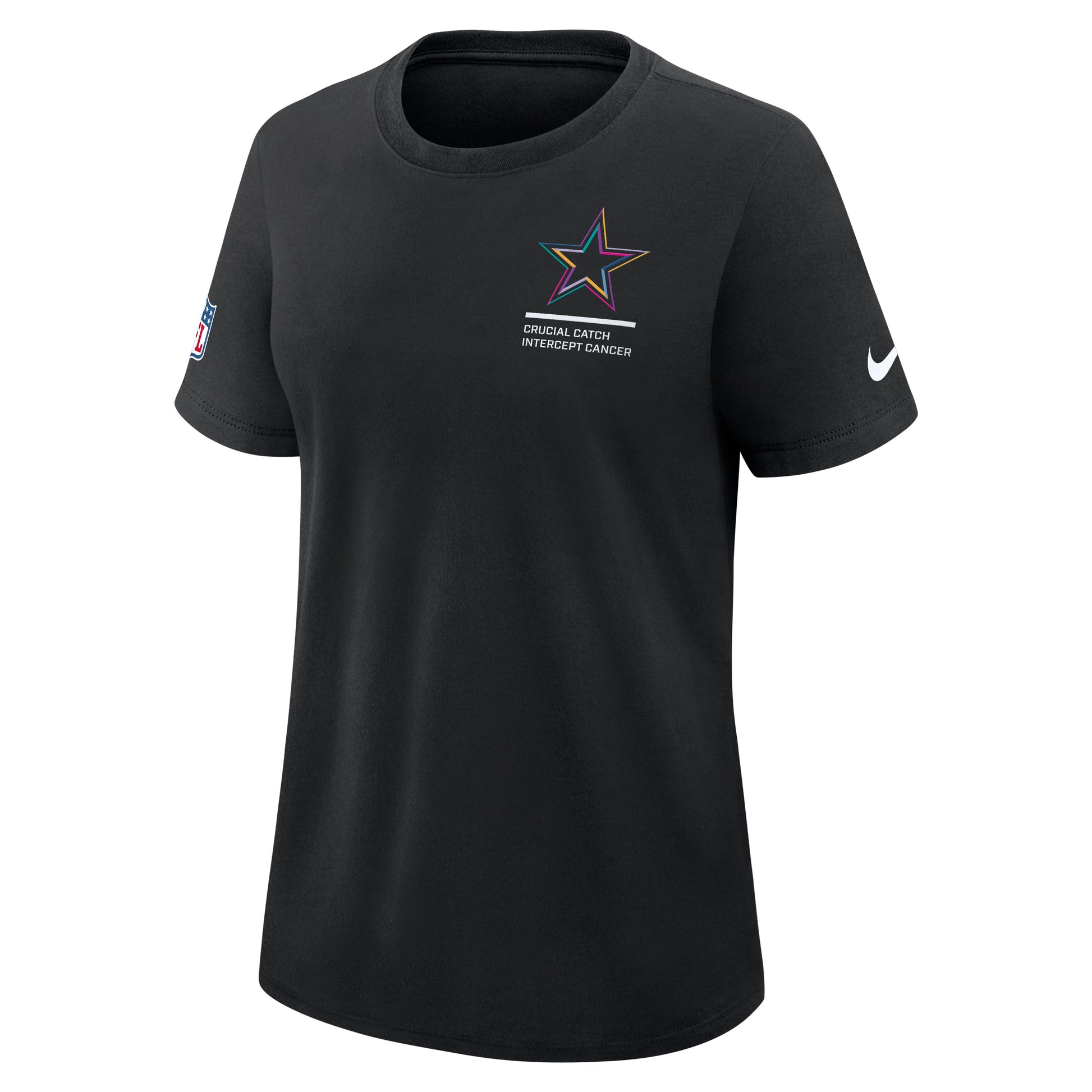 Show your Cowboy pride when your BOYS hit the gridiron for battle. You'll want to wear this Women's Crucial Catch Team Logo T-Shirt from Nike. This Tee features team logo and Crucial Catch Graphics. Add this piece of Cowboys apparel to your collection today.