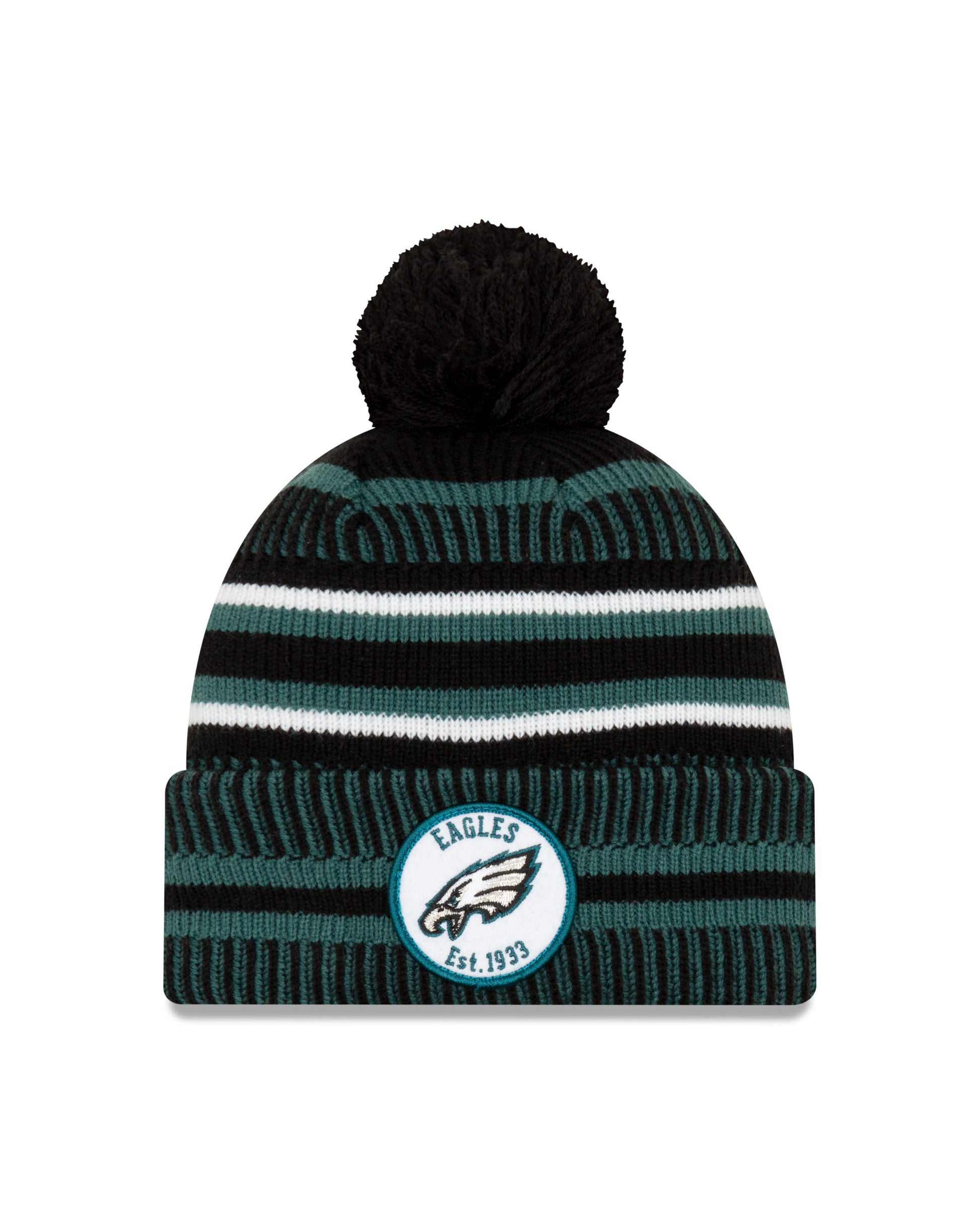 Philadelphia Eagles New Era Sideline Sport Cuffed Pom Knit Hat- Black