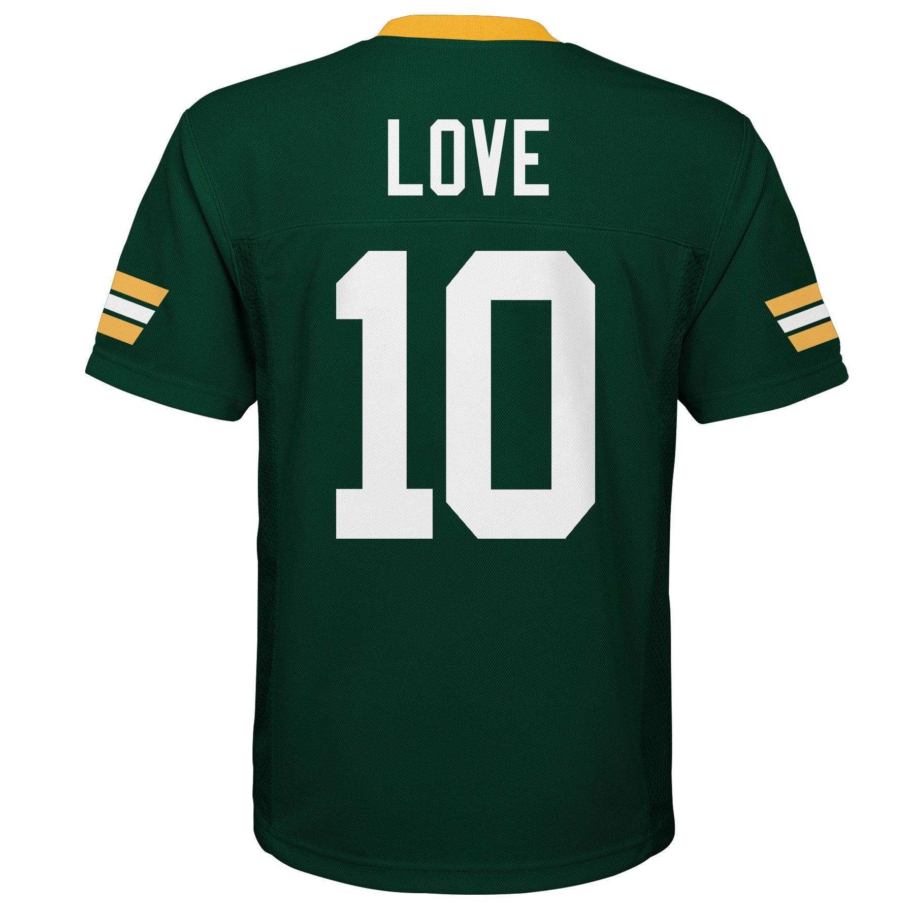 Your youngster can show off who their favorite player in football is with this Green Bay Packers Jordan Love Replica Player jersey. It's designed with detailed graphics to replicate the jerseys the Green Bay Packers wear each week. Finished with mesh side panels, this jersey will help your young fan feel closer to their favorite team than ever before.