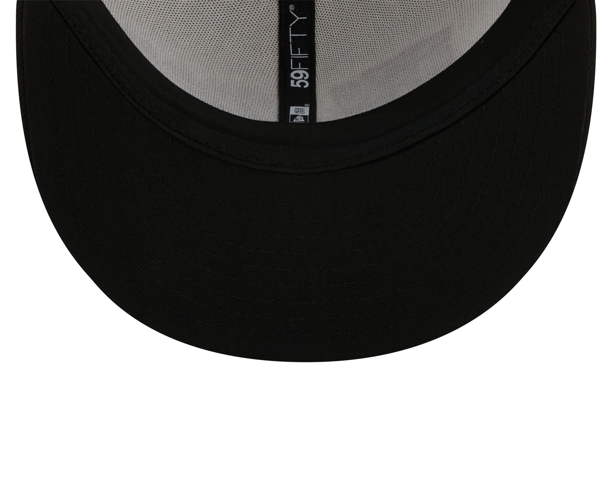The 59FIFTY® cap is New Era's signature fitted cap. It is a structured cap with a flat visor, that has the ability to curve. The 59FIFTY® cap has a full crown and six panels. The cap has eight rows of visor stitching and a button on top.