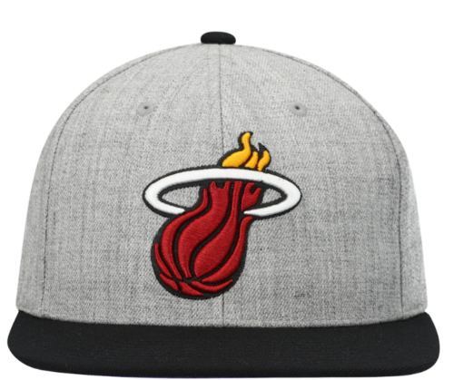 Show off your Heat pride with this Heather Gray Under Pop Snapback. Features heat embordered graphics on the front. Mitchell & Ness embordered across the back.