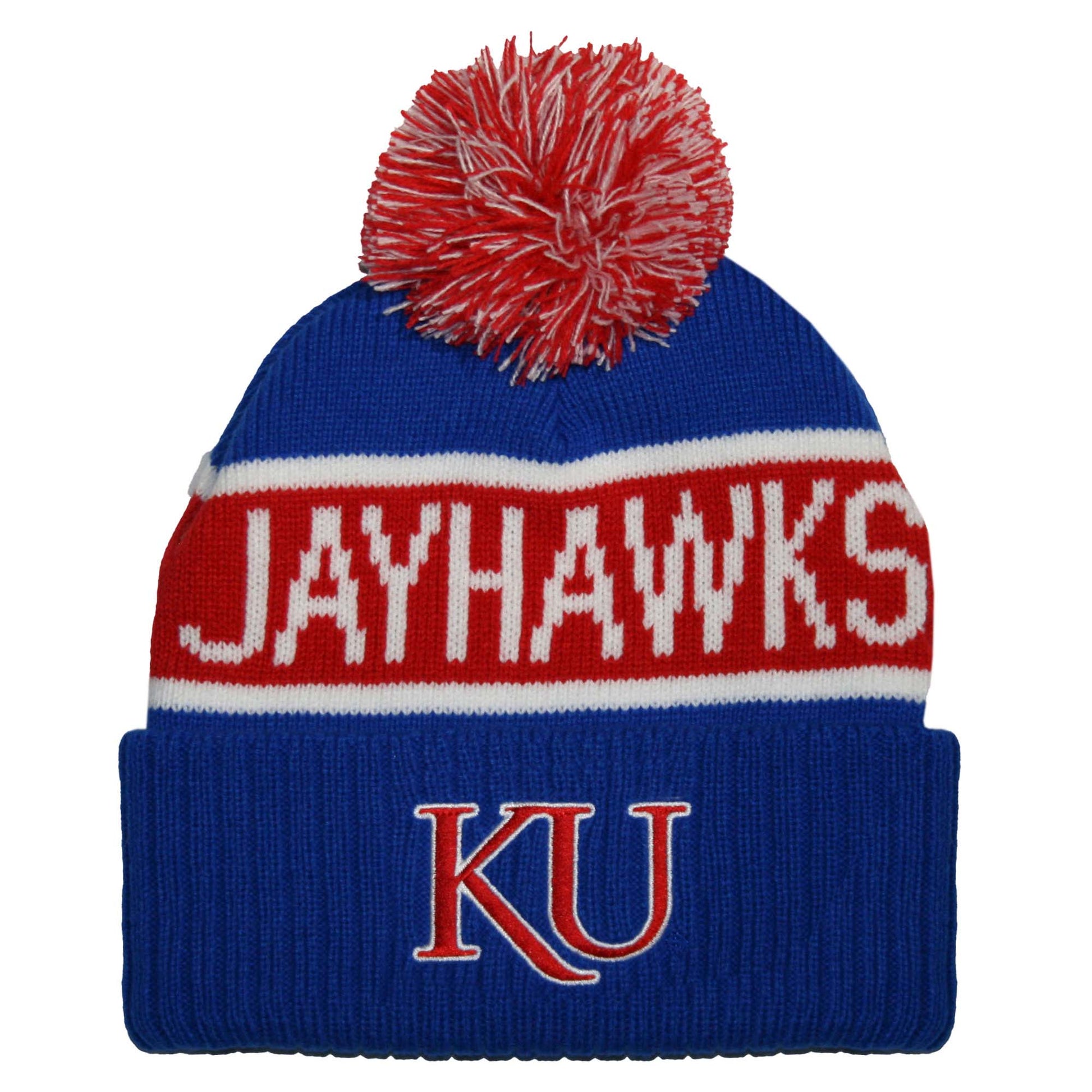 Kansas Jayhawks Franchise Club Warrior Knit Hat - Blue w/ Pom Pom