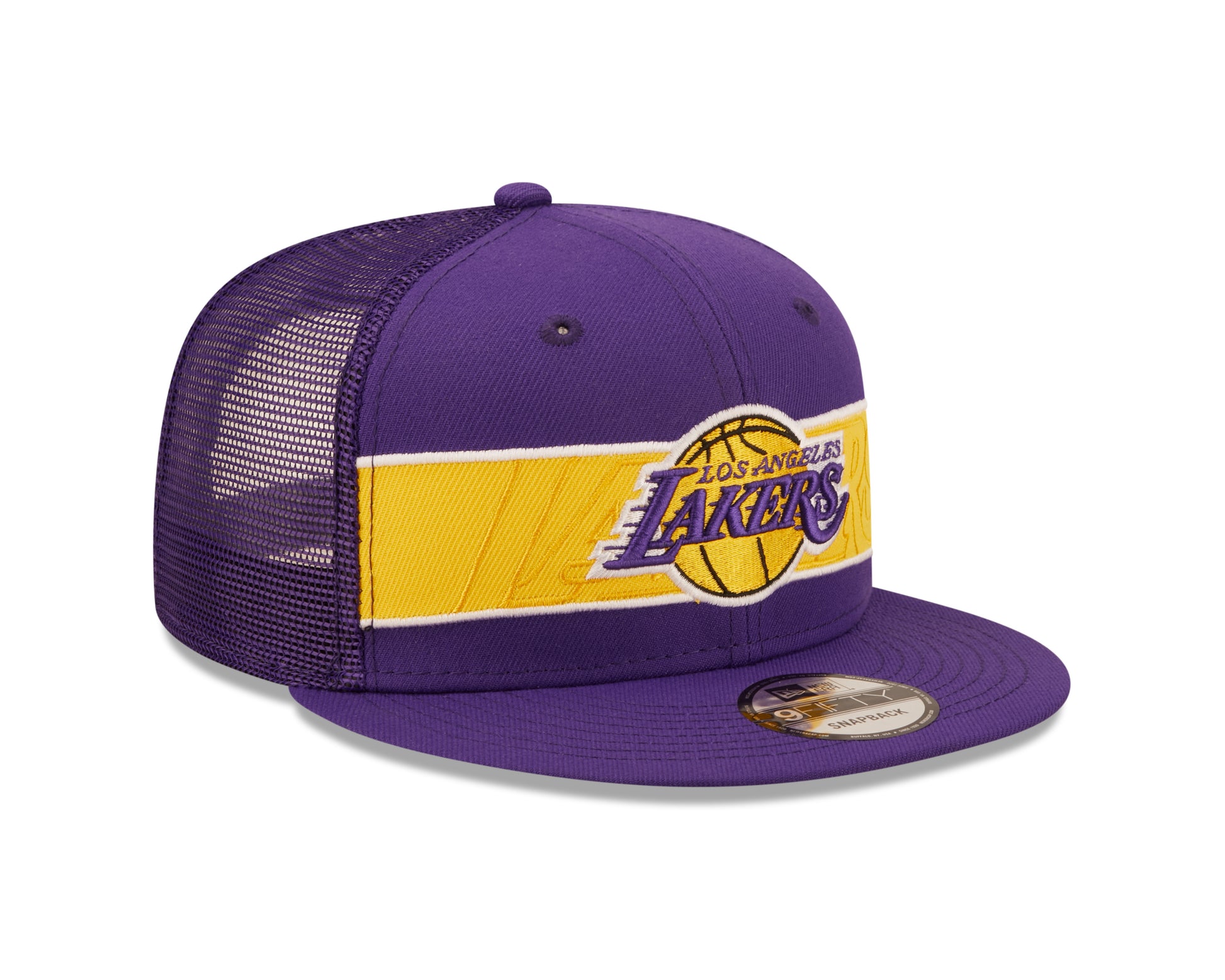 Show off your Lakers pride with this Tonal Trucker Mesh 9Fifty Snapback. Hat features team logo on the crown with team name in tonal background New era flag on the left side. Breathable mesh snapback with team hit on the back.