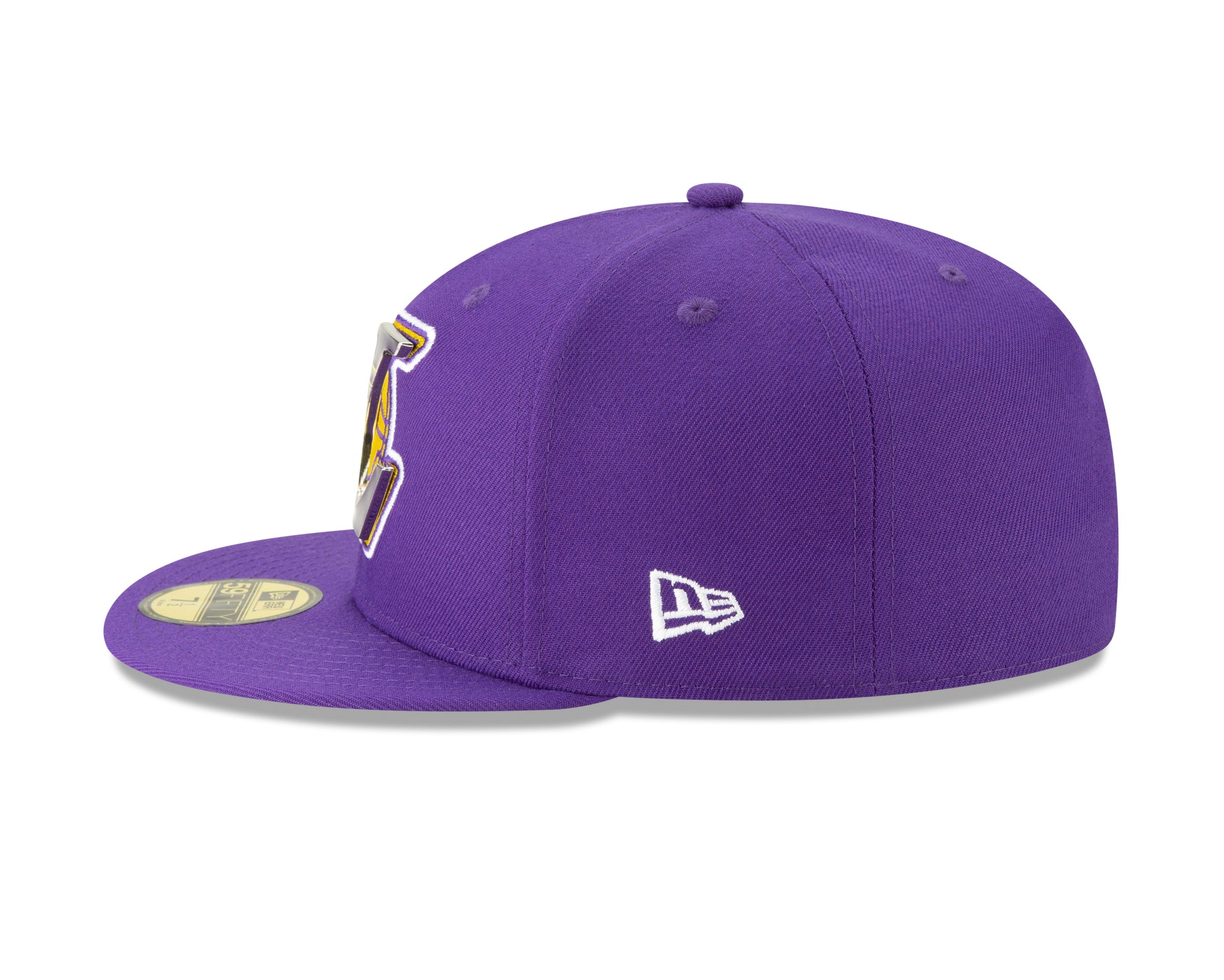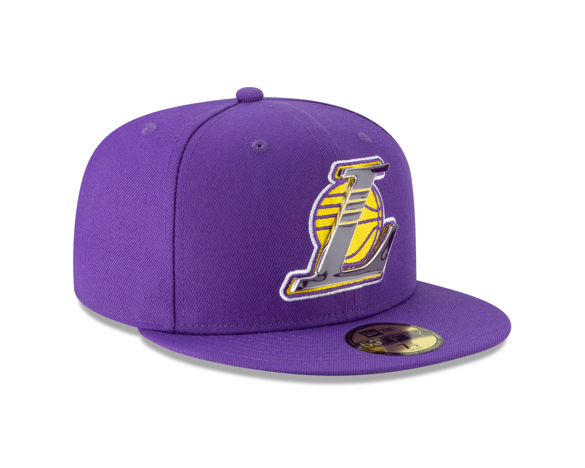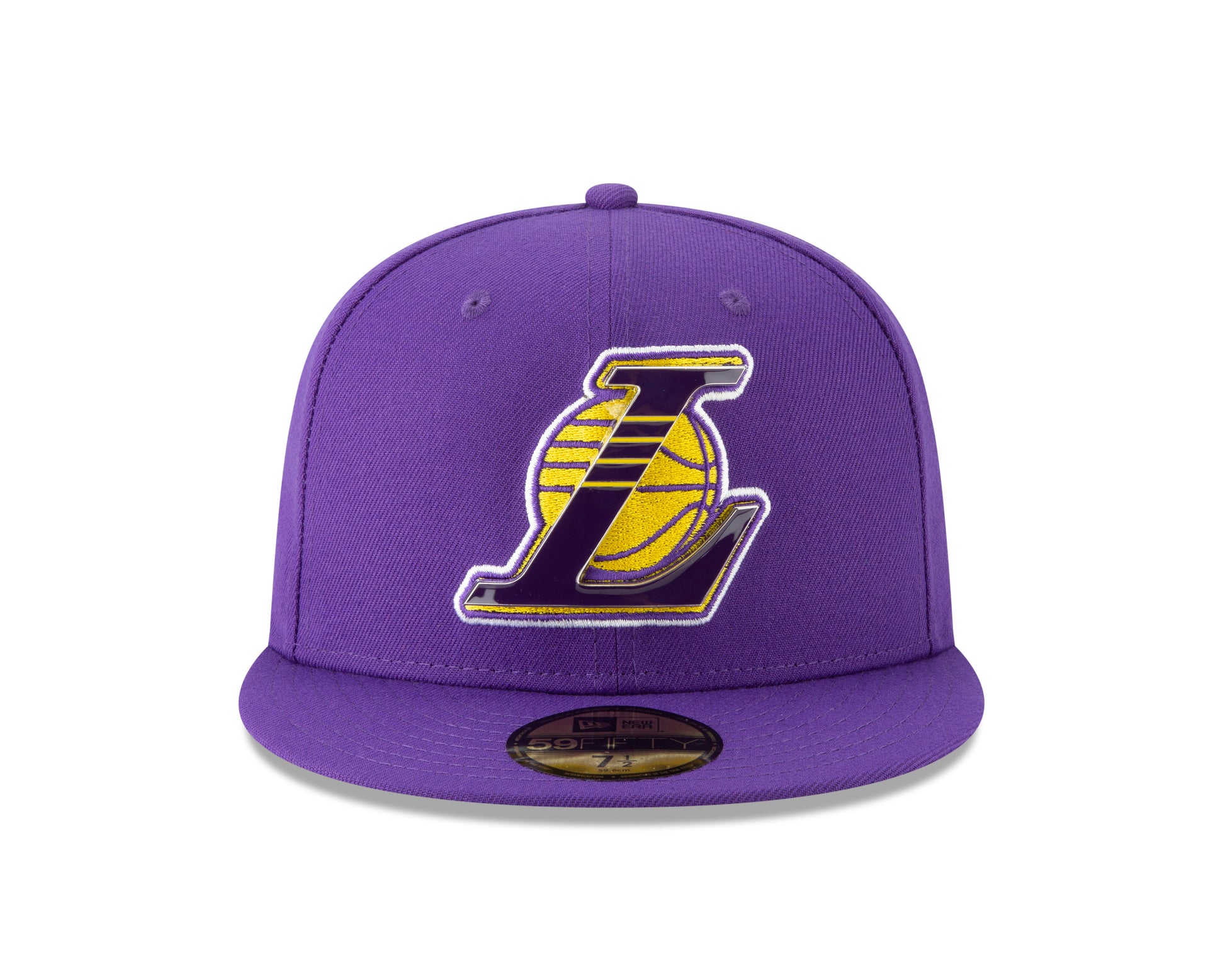 Lakers Fans !!. Show off in this Metal Thread 59FIFTY Fitted hat. This fitted hat features Lakers badge in Metal Thread on crown and NBA logo on the back . So don't just dream about those Lakers wear one for yourself. The 59FIFTY® cap is New Era's signature fitted cap. It is a structured cap with a flat visor, that has the ability to curve. The 59FIFTY® cap has a full crown and six panels. The cap has eight rows of visor stitching and a button on top.