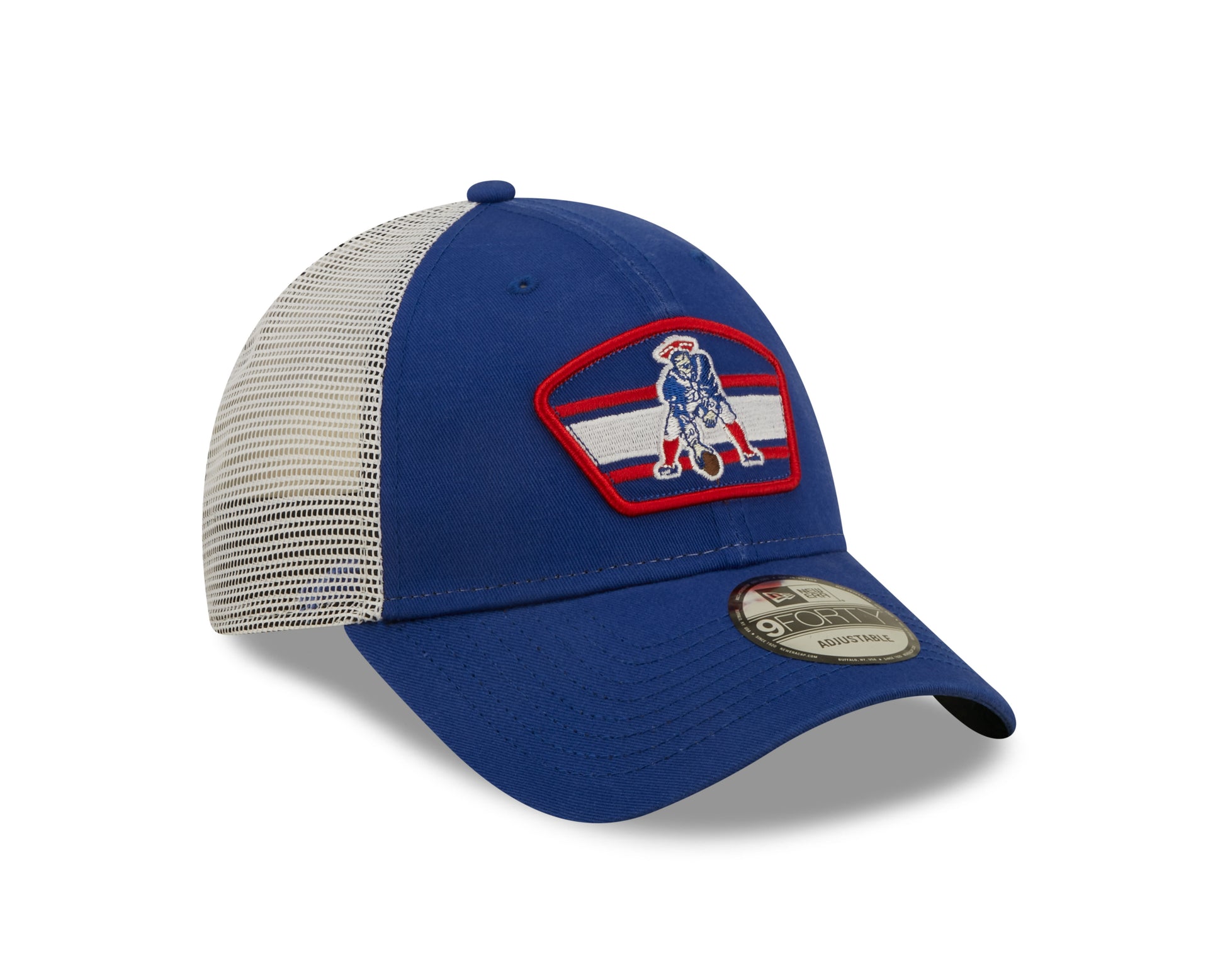 Patriots Fans! You'll want to sport this brand new Logo Patch Trucker Mesh 9Forty Adjustable Snap back Cap. This cap features Patched logo in front. with adjustable snap back. Breathable mesh back with New Era logo on left side.
