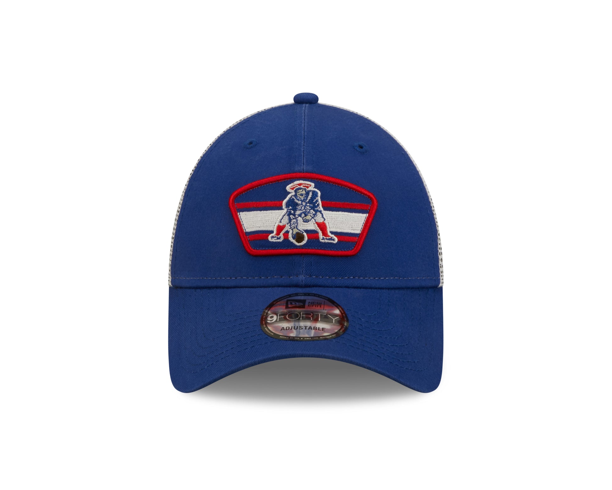 New England Patriots New Era Logo Patch Trucker Mesh 9Forty Snap Back Hat - Blue