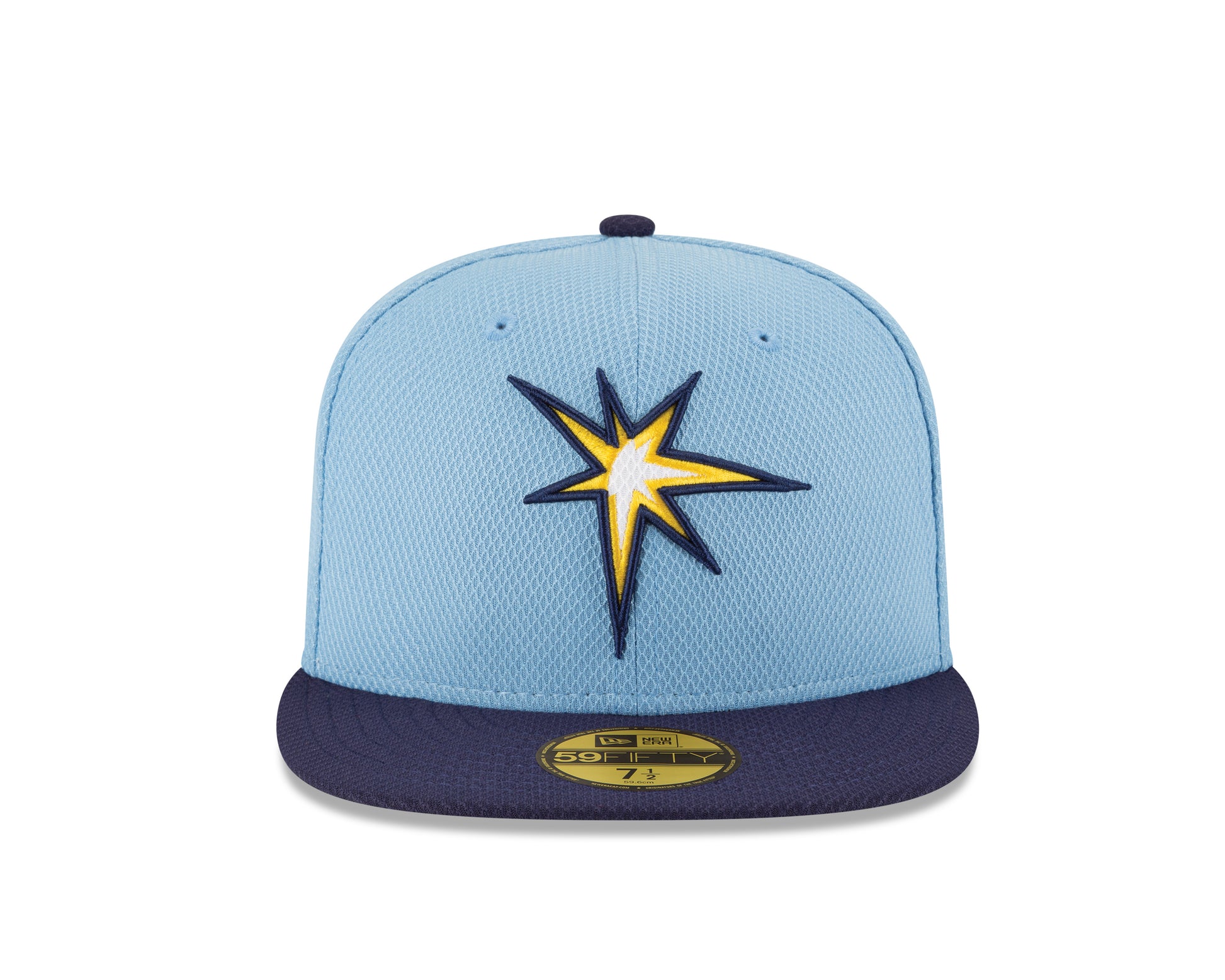 Rays Fans!! Sport this New Era Diamond Era On-Field fitted Hat, 59FIFTY. This fitted hat features a 3D embroidered Rays logo on crown and MLB logo on the back along with a cool flat bill. This is the same hat you will see your favorite players wearing. So don't just dream about those Rays wear one for yourself. The 59FIFTY® cap is New Era's signature fitted cap. It is a structured cap with a flat visor, that has the ability to curve. The 59FIFTY® cap has a full crown and six panels. The cap has eight rows of visor stitching and a button on top.