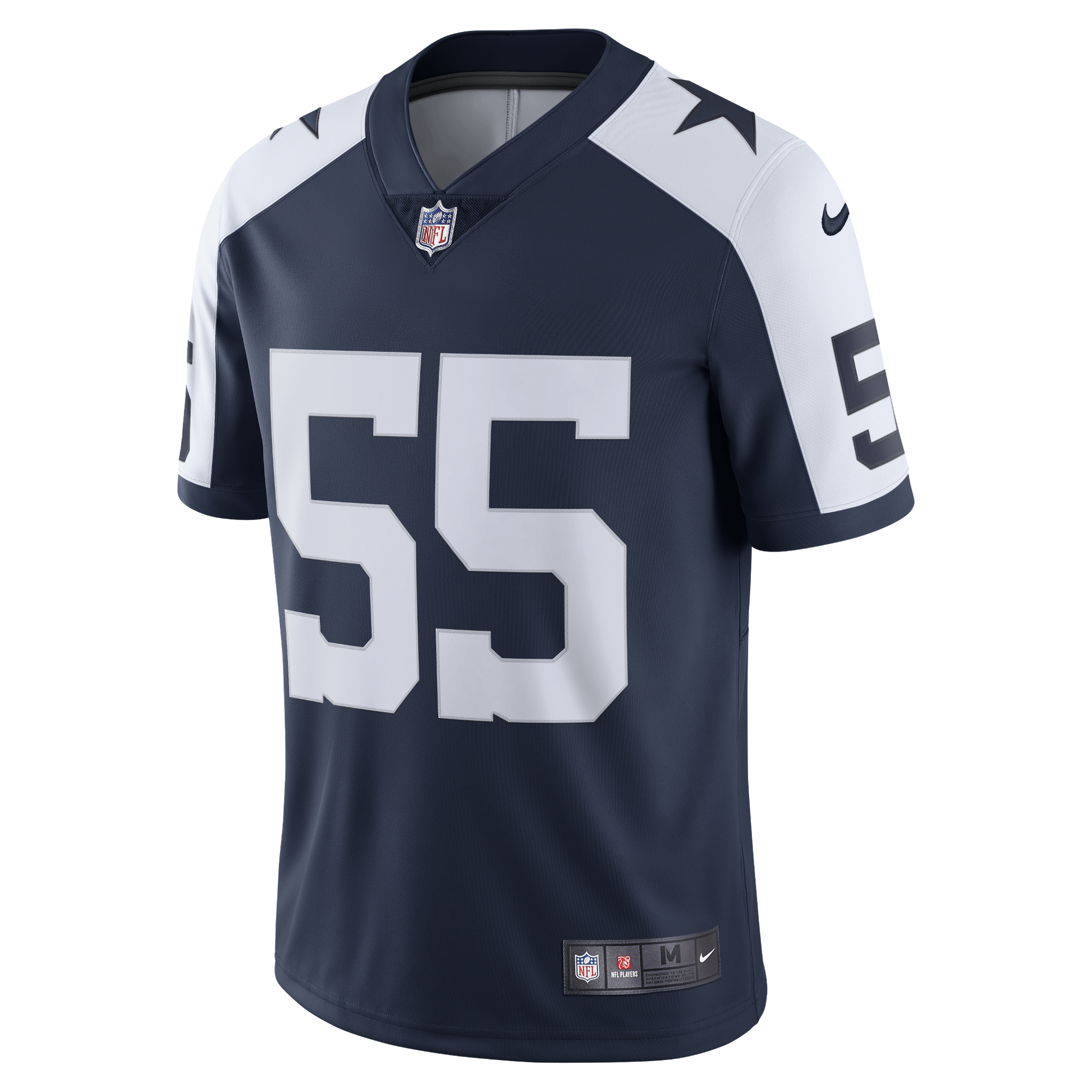 You know you are a true Cowboys fan! Your going to want to show off in this Nike Dallas Cowboys Limited "Dri-Fit" Jersey By Nike.. Inspired by the actual gear that Leighton wears on the field, this jersey boasts the Cowboys design The chainmaille mesh grill at the front neck with premium team detailing and back seam lines elevate the look to a new level. Nike "Dri-Fit technology that features a no-tag neck label that offers comfort and strategic ventilation, bold contrast color detailing, tackle twill player numbers and Vander Esch name on the back in tackle twill lettering .(tackle twill numbers and letters are stitched or embroidered on) Sleeves feature the Nike Swoosh. When going to the game or just showing off around town you'll want to sport this Limited Jersey to show off your True Cowboys pride.