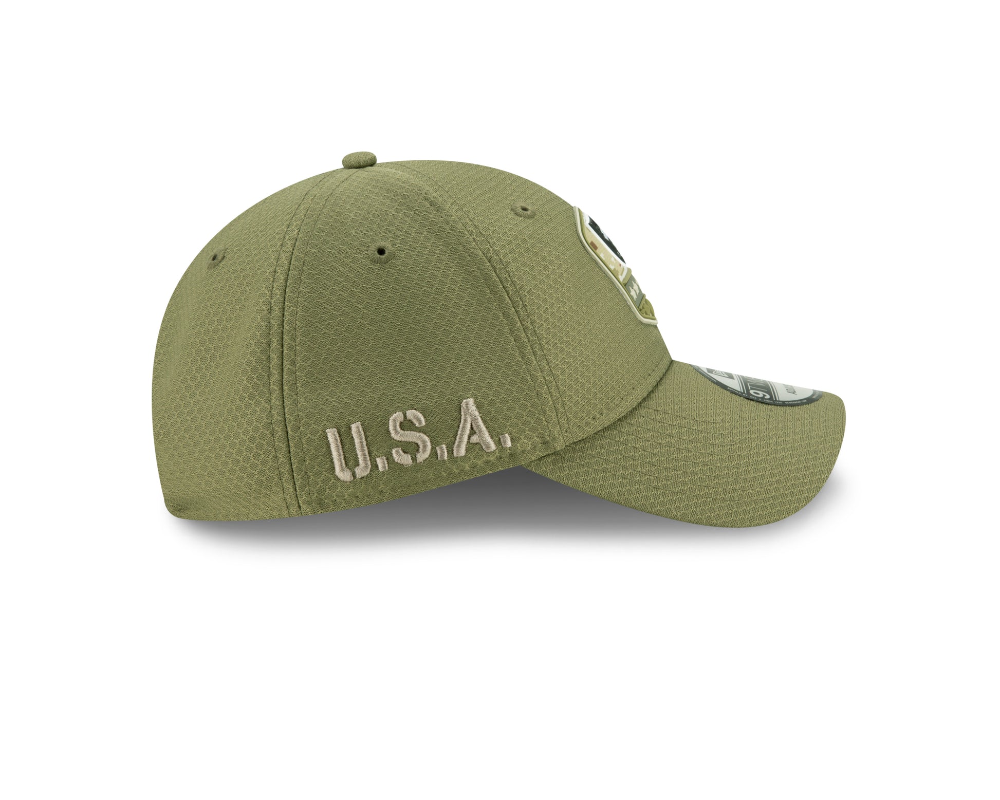 NFL Official Salute To Service hat from New Era. This awesome hat is part of the Salute to Service collection. Featuring team embroidered logo on front and Salute To Service Ribbon on the back. USA on the side. Strap Adjustable back. Manufactured by New Era and officially licensed.