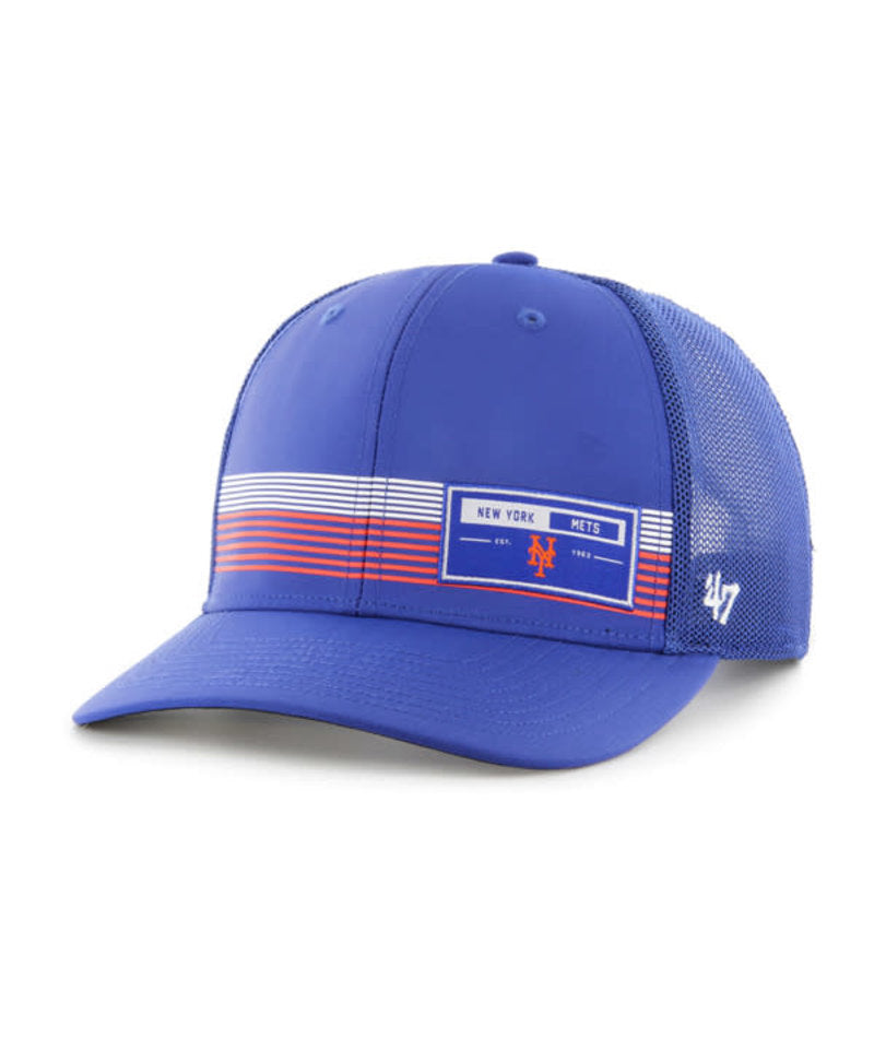When no other hat will do. This classic hat is the one to wear to the next Mets game. This '47 Brand adjustable Rangefinder Snap Back Mesh trucker . This hat will make sure you stand out. This bold cap features a team logo on the crown with Slight curved bill, mesh trucker back and adjustable closure. "brrr" techonlogy that utilizes three key features that work togther to multipy the cooling effect.