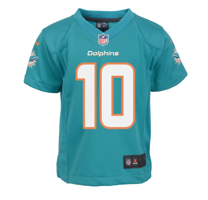When Tyreek Hill is on the field, opposing teams take notice, so help your youngster show some love for one of the top players in the NFL with this exclusive Miami Dolphins Game jersey from Nike. Complete with mesh panels for extra breathability, this jersey replicates the authentic one that Tyreek Hill wears every Sunday, giving your young fan the perfect piece of gear for every Miami Dolphins game this season.