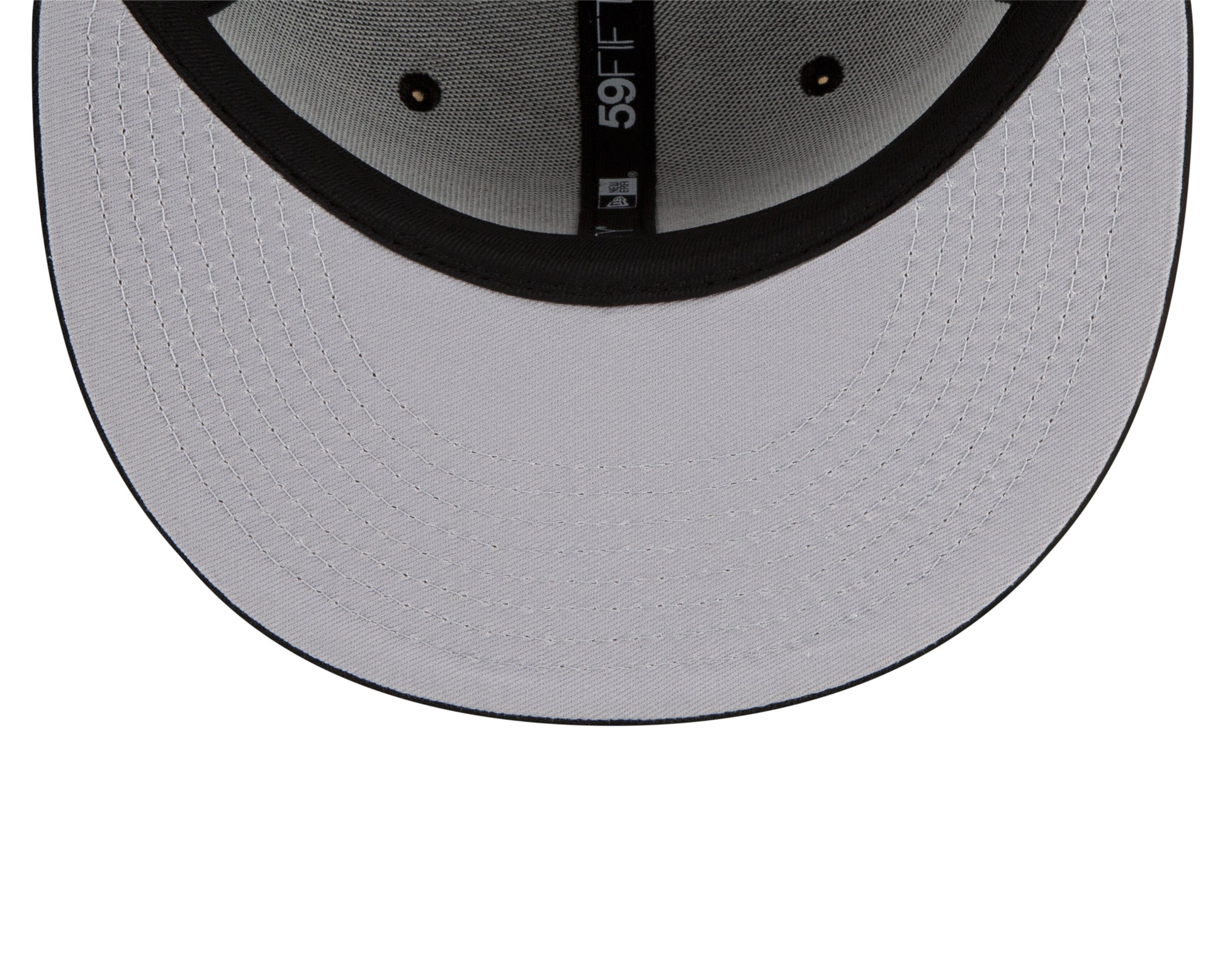 The 59FIFTY® cap is New Era's signature fitted cap. It is a structured cap with a flat visor, that has the ability to curve. The 59FIFTY® cap has a full crown and six panels. The cap has eight rows of visor stitching and a button on top.