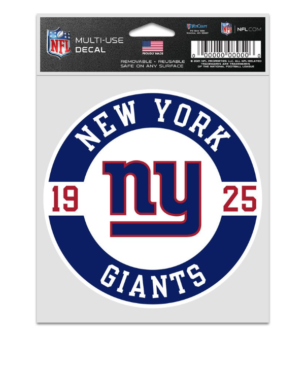 Take your New York Giants pride with you everywhere you go with this decal from WinCraft. This decal is Multi-Use and its reusable/ Removable and safe for most serfaces.