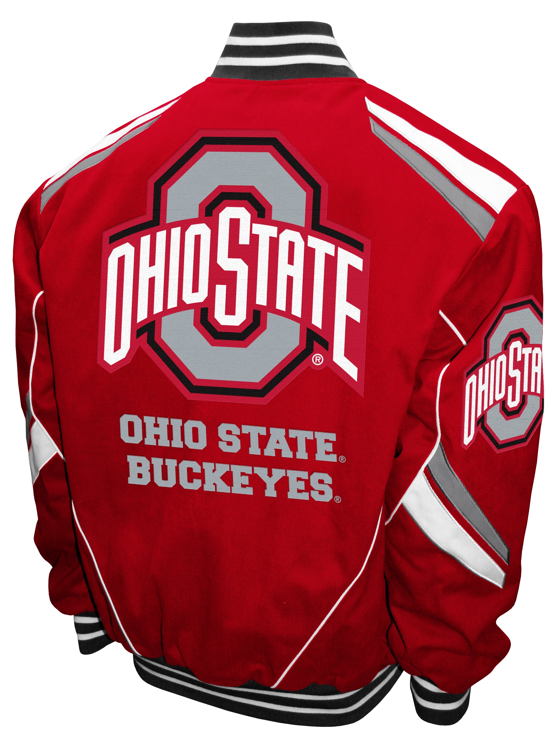 Celebrate with your Buckeyes Stout Twill Jacket By Franchise Club . This cool jacket features Team embroidered graphics on the front and back. "GO BUCKEYES"