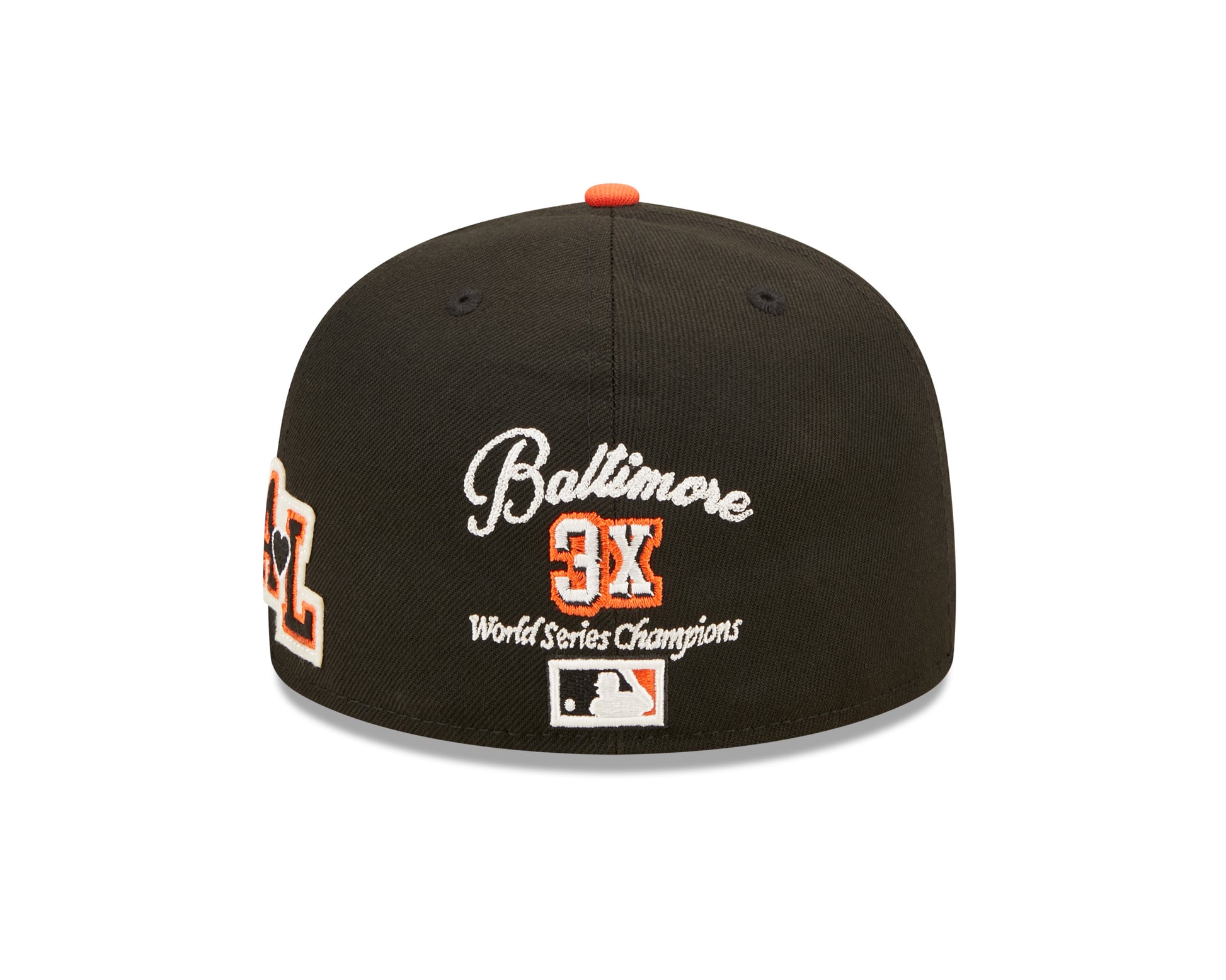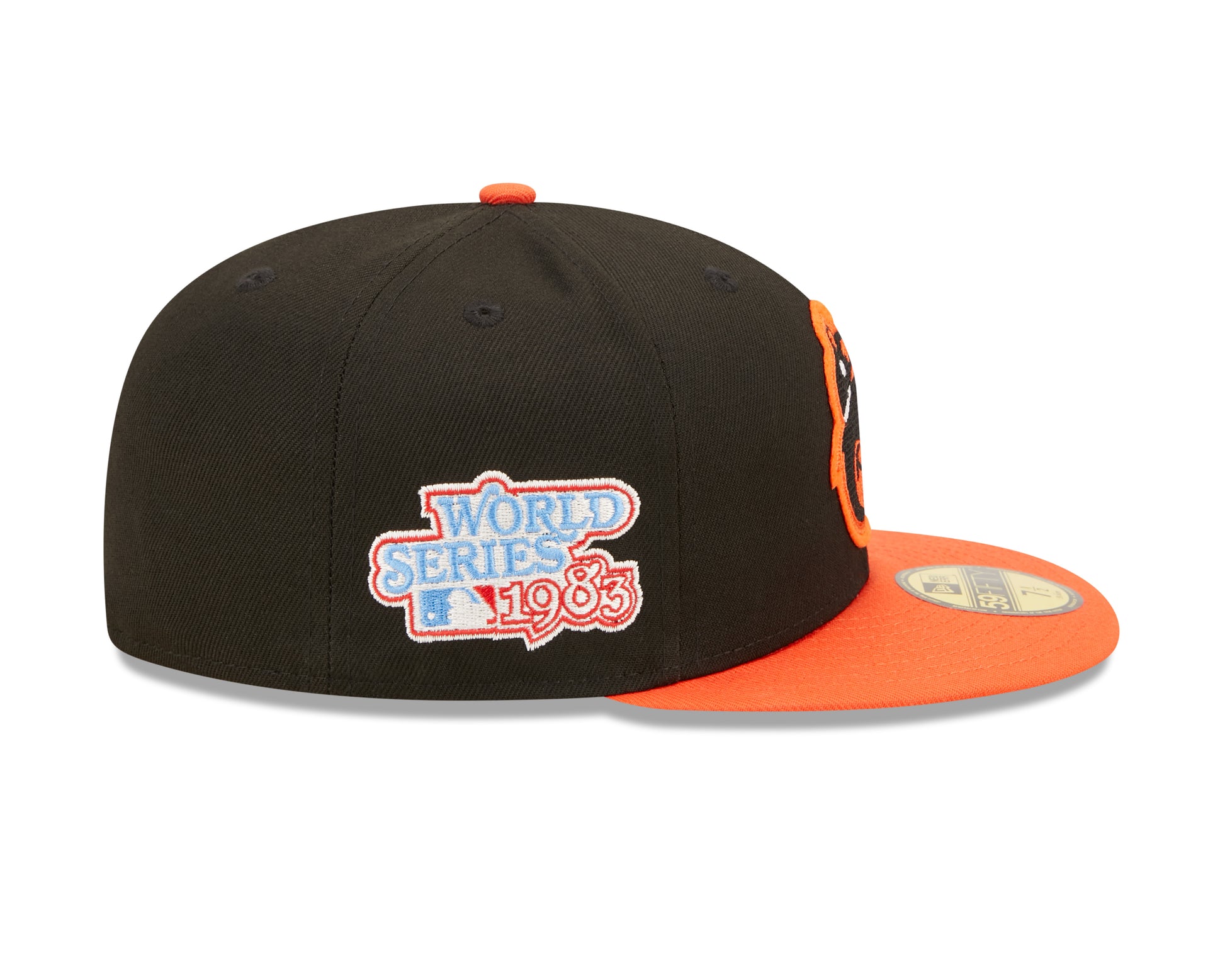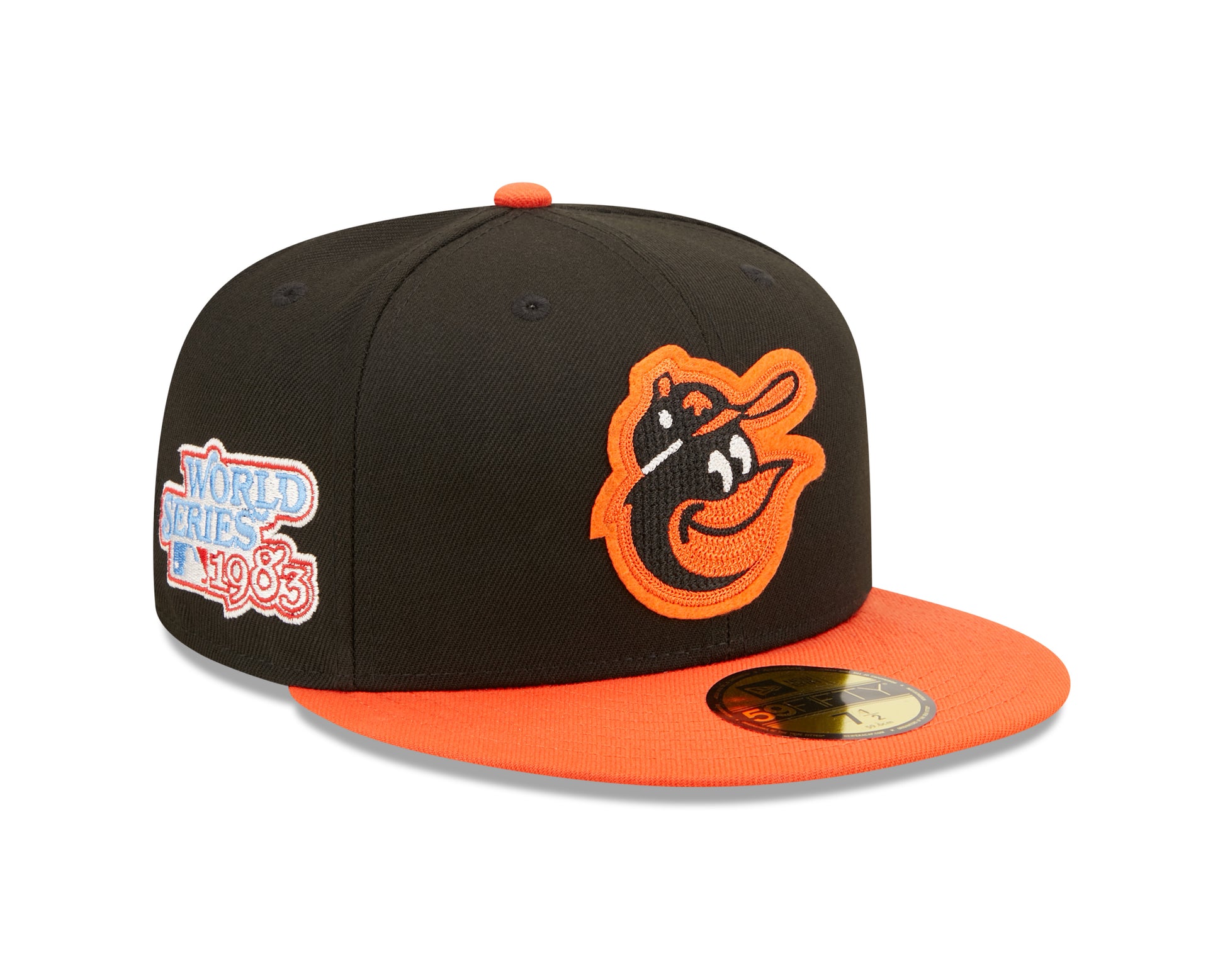 Show off in this Letterman Patched 59FIFTY Fitted hat. This fitted hat features Orioles logo on the front crown. World Series graphics representing true team Pride. City specific graphics on the left side. MLB logo on the back along with World Series championship numbers. The 59FIFTY® cap is New Era's signature fitted cap. It is a structured cap with a flat visor, that has the ability to curve. The 59FIFTY® cap has a full crown and six panels. The cap has eight rows of visor stitching and a button on top.