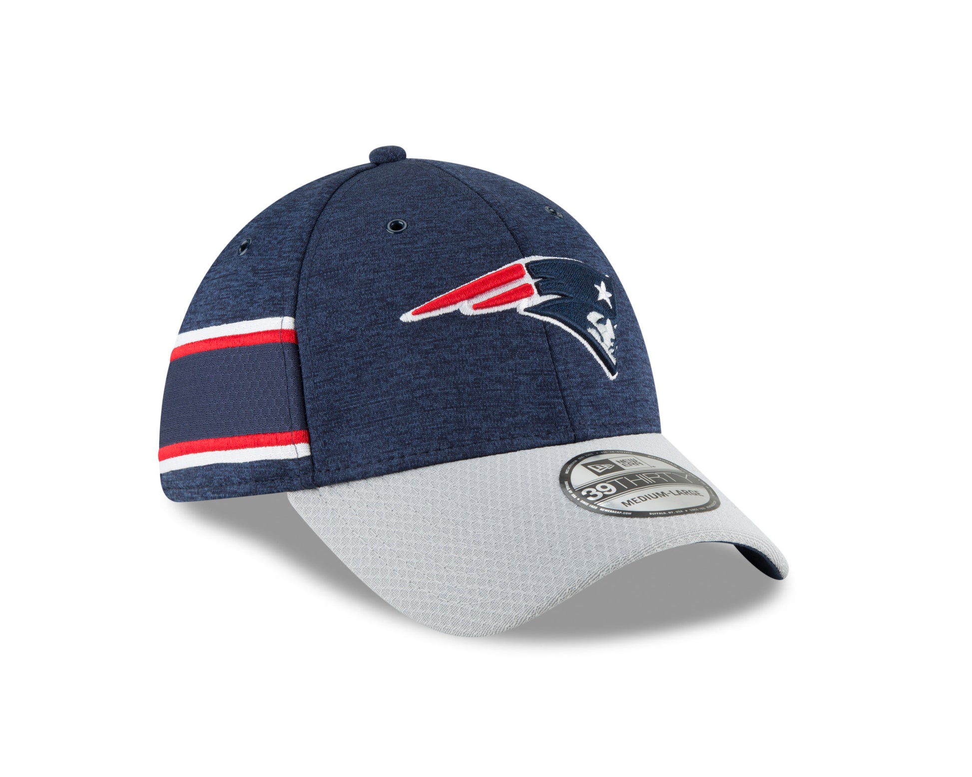 Patriots fans!!! You'll want to sport this brand new 2018 official On-Fileld Sideline 39Thirty Cap. This cap is worn by all your favorite players as they hit the field. This cap features traditional logo in front with contrasting bill. Jersey stripe on right side. NFL shield on the back with New Era logo on left side. Stay cool in the hot sun with HEX TECH offering moisture-reducing COOLERA™ and Dryera™ technologies repels weather related water. S/M fits 6 7/8 - 7 1/4. M/L fits 7 1/4 - 7 5/8. L/XL fits 7 5/8 - 8. Sizes are approximate.