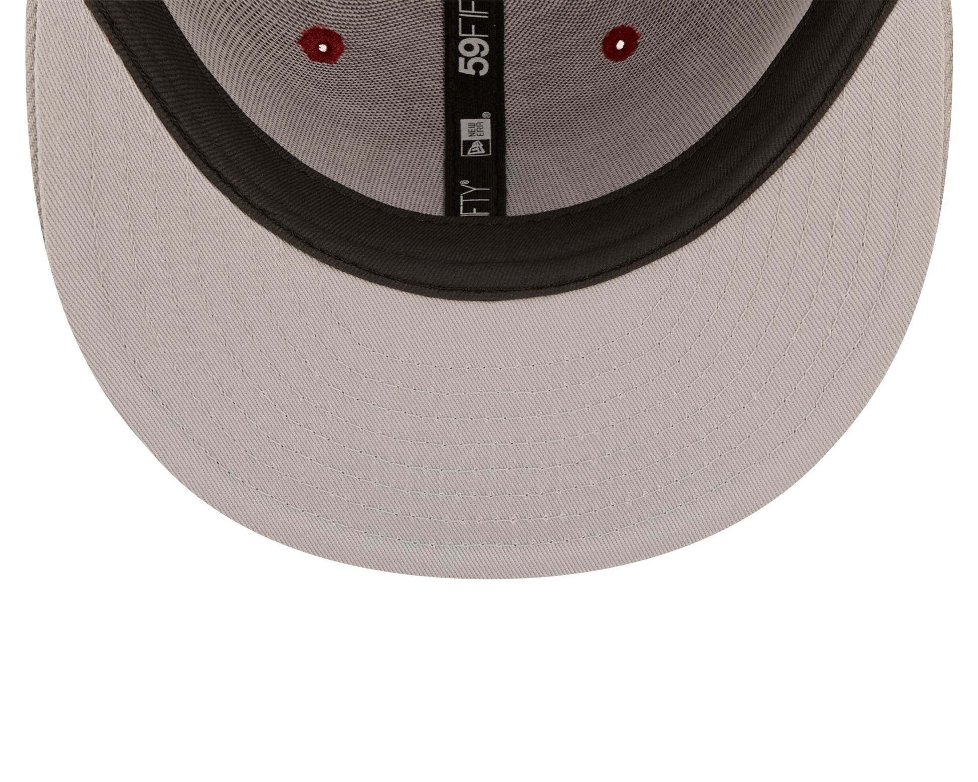 The 59FIFTY® cap is New Era's signature fitted cap. It is a structured cap with a flat visor, that has the ability to curve. The 59FIFTY® cap has a full crown and six panels. The cap has eight rows of visor stitching and a button on top.