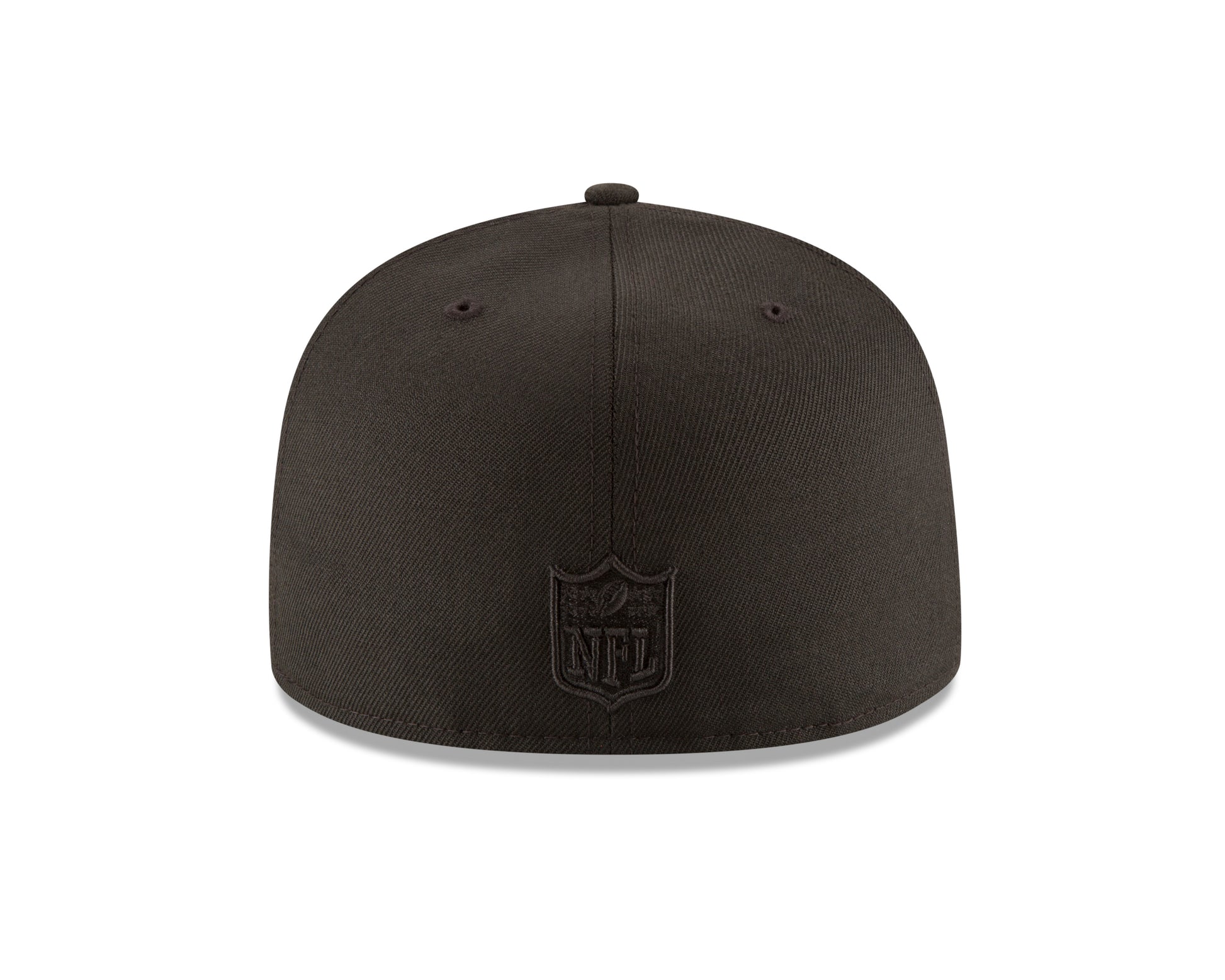 Sport this New Era Black Color Pack 59FIFTY Fitted Hat. This fitted hat features a 3D Black tonal team logo on the crown . Gray under visor, NFL shield logo on the back and New Era flag on left side. Sharp graphics and bold solid-color design ensure your die-hard team pride is unquestionable. This cap is also built with a high crown, fitted closure and flat bill to give you a trendy option to support your team.