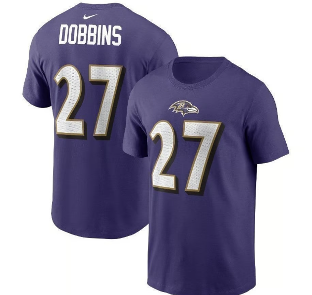 Baltimore Ravens J.K. Dobbins #27 Player Name & Number Men's T-Shirt - Purple