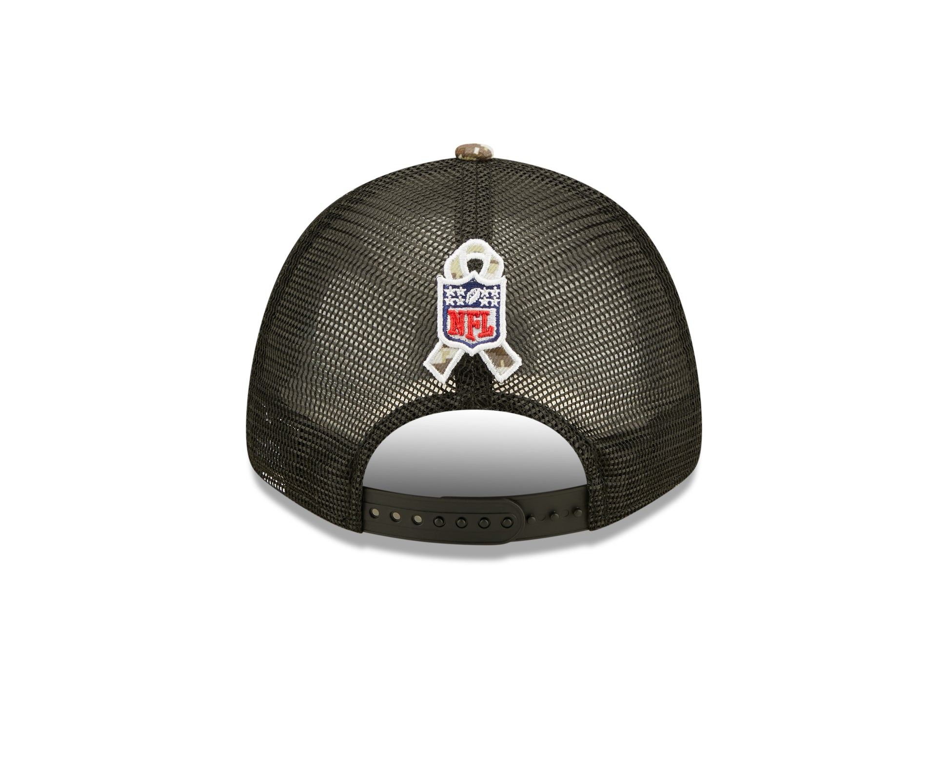 Honor our service members while supporting the your favorite team in this Salute To Service 9FORTY Snapback Trucker Hat. This New Era hat proudly displays an embroidered team logo with camouflage detail behind it, as well as a banner underneath that features the team's name and year they joined the NFL. The visor has an allover camouflage pattern, matching the Salute To Service ribbon embroidered on the rear. A woven tag with an American flag adorns the right side of the hat. The NFL does not profit from the sale of Salute to Service products. Charitable contributions are awarded by the NFL Foundation to the NFL's military nonprofit partners. For more information, please visit www.NFL.com/causes/salute.