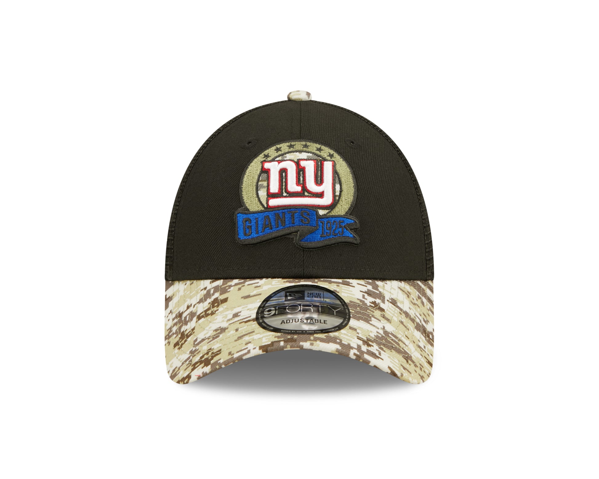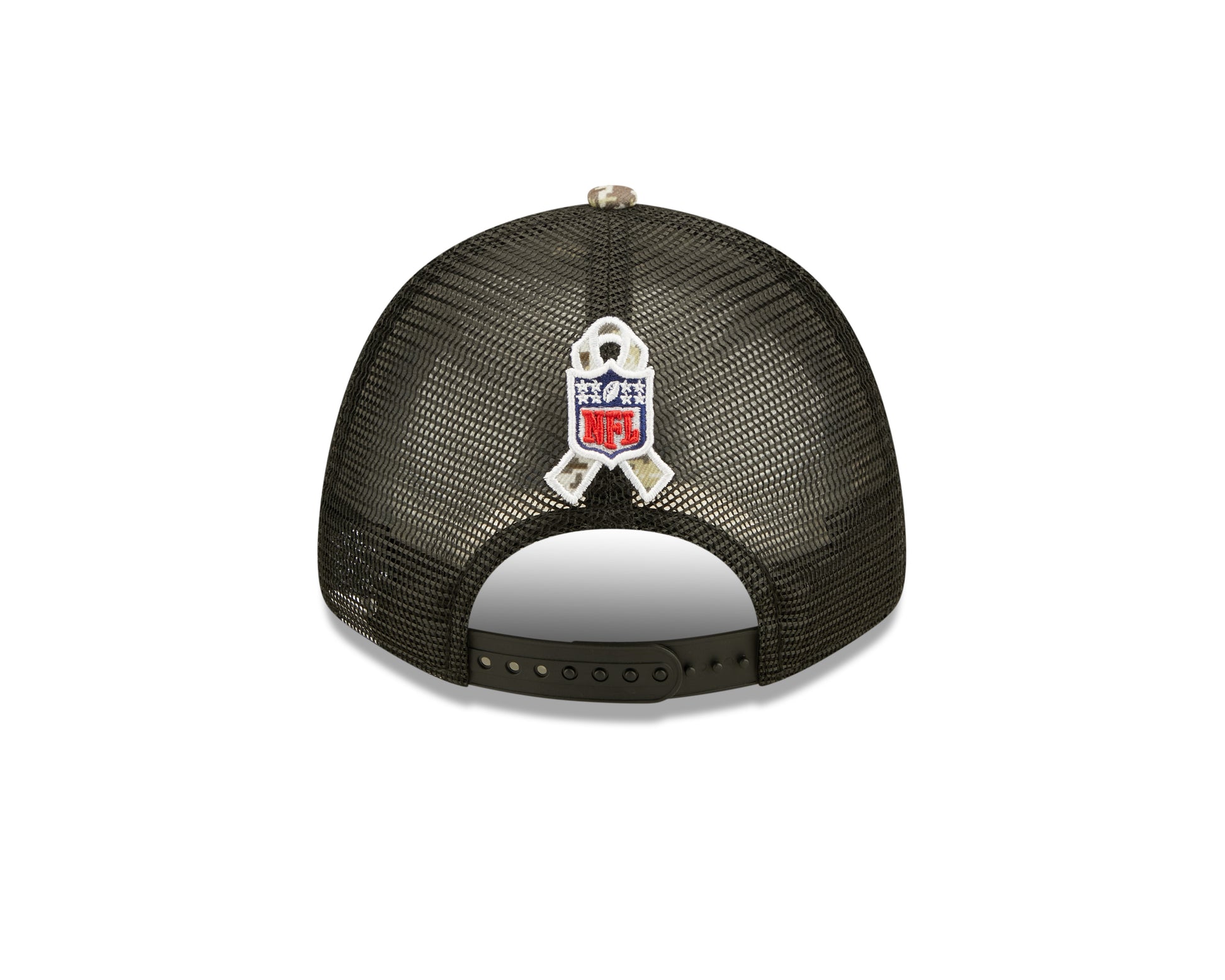 Honor our service members while supporting the your favorite team in this  Salute To Service 9FORTY Snapback Trucker Hat. This New Era hat proudly displays an embroidered team logo with camouflage detail behind it, as well as a banner underneath that features the team's name and year they joined the NFL. The visor has an allover camouflage pattern, matching the Salute To Service ribbon embroidered on the rear. A woven tag with an American flag adorns the right side of the hat. The NFL does not profit from the sale of Salute to Service products. Charitable contributions are awarded by the NFL Foundation to the NFL's military nonprofit partners. For more information, please visit www.NFL.com/causes/salute.